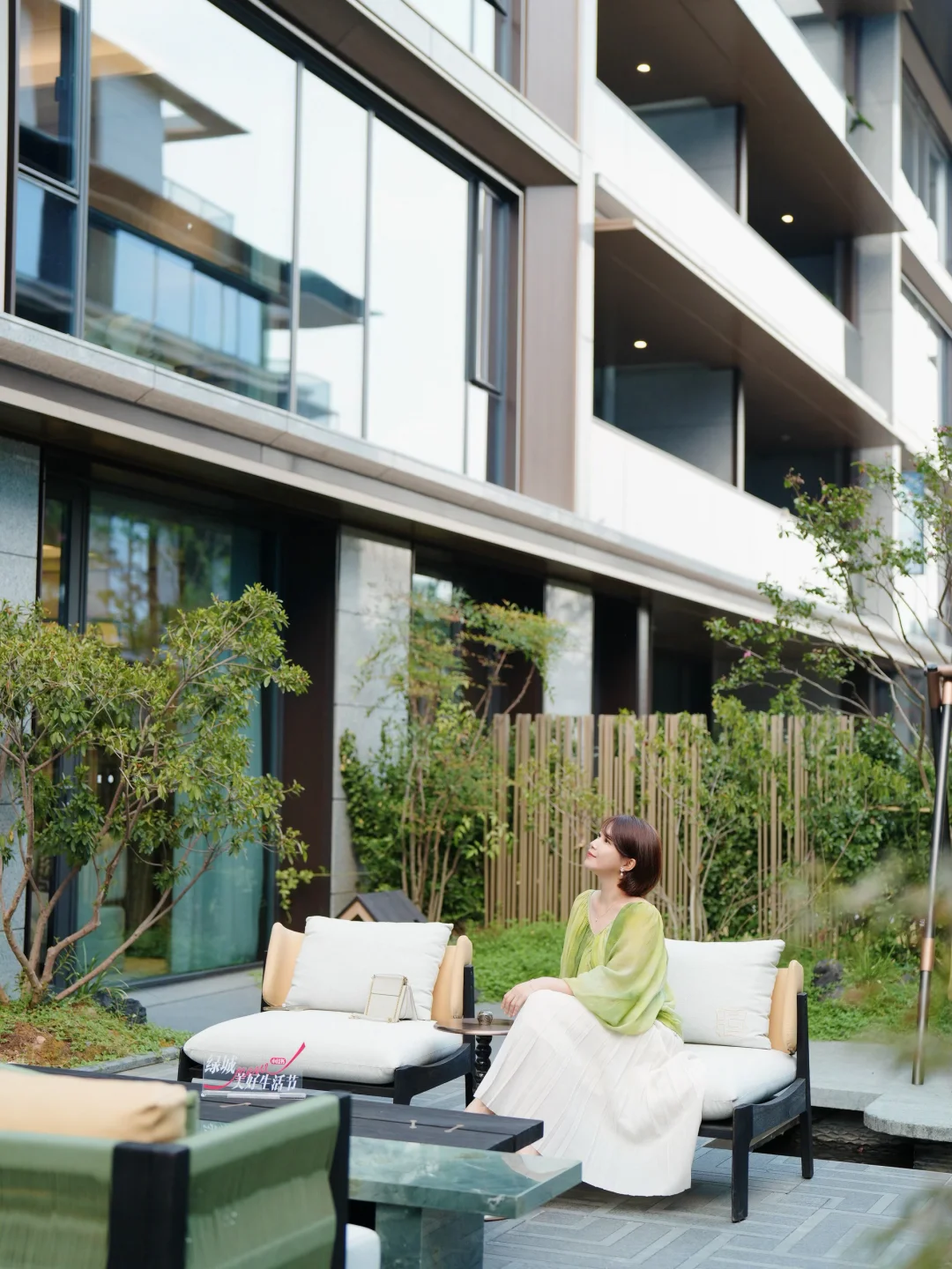 穿过街道,瞬间步入一个被自然包裹的世界。低密的建筑与清澈的水景、苍翠的绿植巧妙融合,耳边是潺潺水声,眼前是法式隽永的景观美学,那种宁静又高级的感觉,瞬间抚平了内心的焦躁。