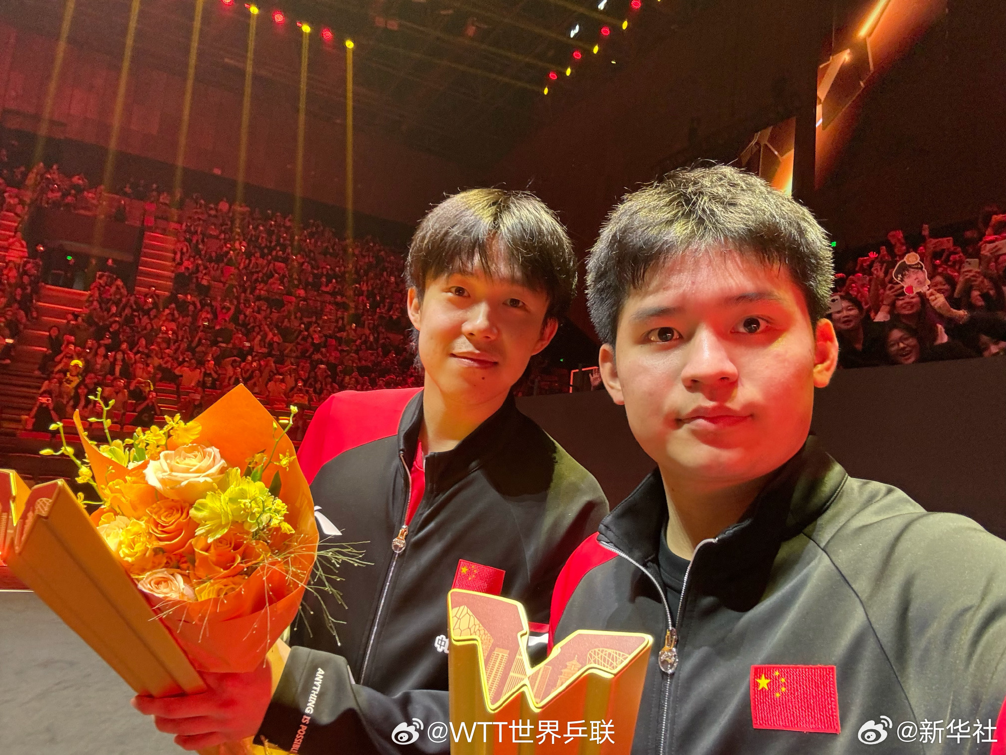 #王楚钦林诗栋捧杯自拍瞬间#【祝贺!#男双冠军自拍#】WTT中国大满贯2025,