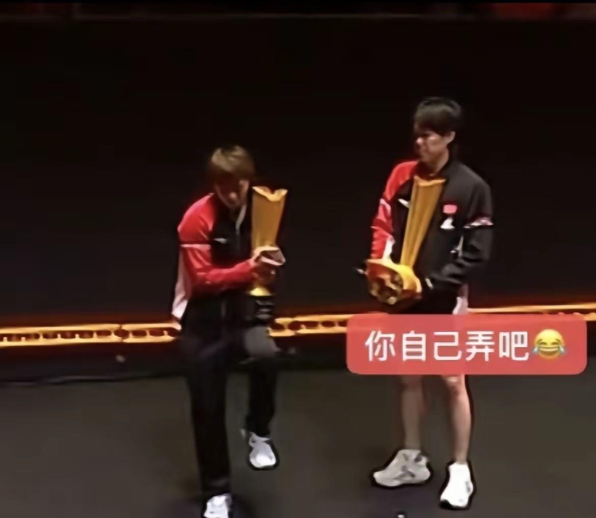 网友调侃王姓姐弟站那里,中间还能放个莎莎。 然后网友就把莎宝给p上了! t2 小分队又齐了! 恭喜王楚钦三冠王,楚钦说解脱了,以后这是回忆了!