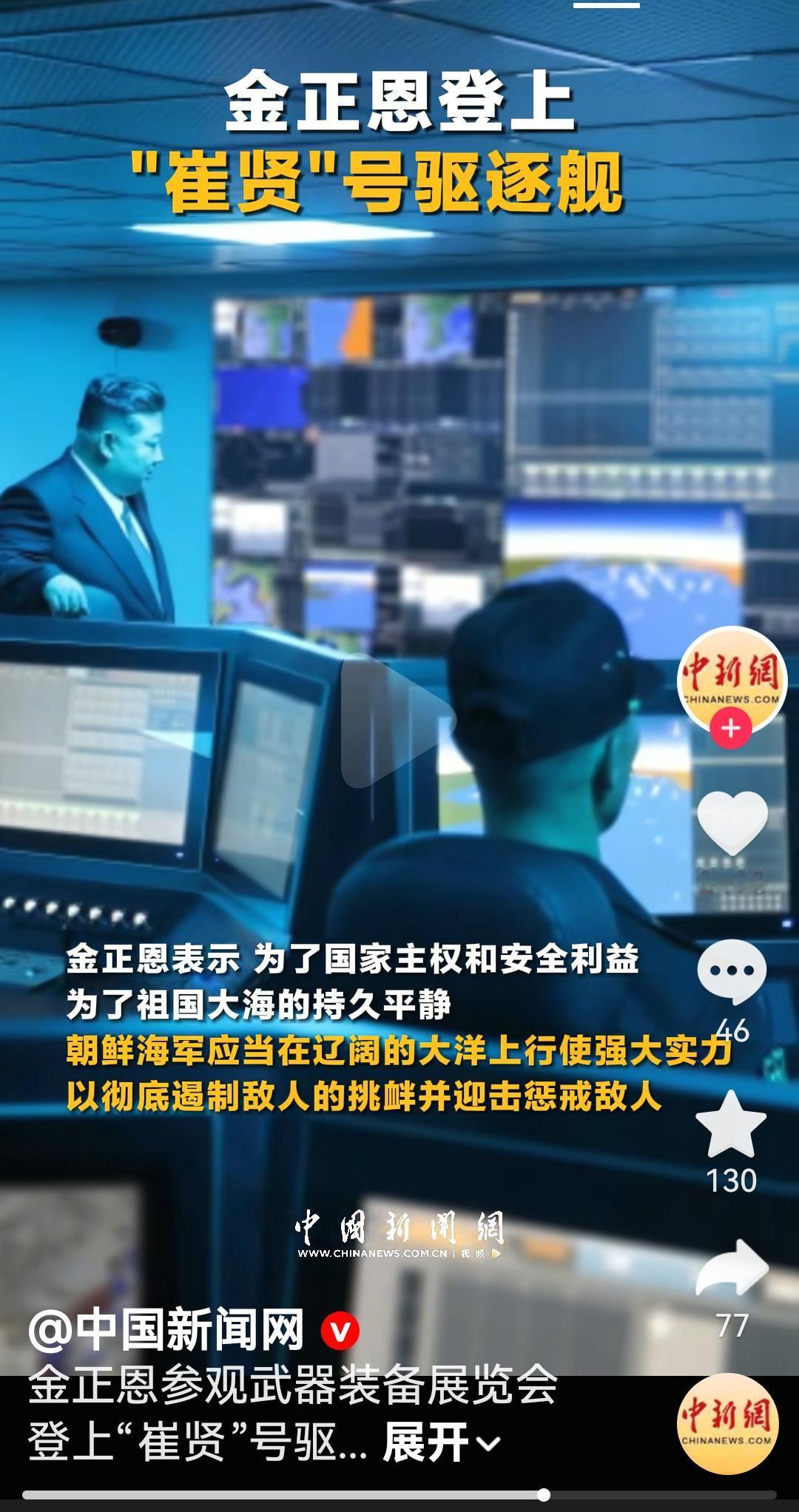 金正恩登上来“崔贤”号驱逐舰 根据朝中社10月6日报道,金正恩5日出息朝鲜武器装备展览,并且登上了“崔贤号” 朝鲜这几年国防进步很大啊,感觉从苦日子熬出来了,这朝鲜半岛这些周边国家中,朝鲜算是慢慢起来了 要是放到中东估计可以吊打他们很多国家了,朝鲜生在这个位置的一个国家,既是他的幸运,就是周边这些国家都在拼命进步,它自然也要进步,同时也是它的不幸,就是周边国家都很厉害,他的存在感都是大国笼罩之下朝鲜领导人 朝鲜 图片来自中国新闻网视频