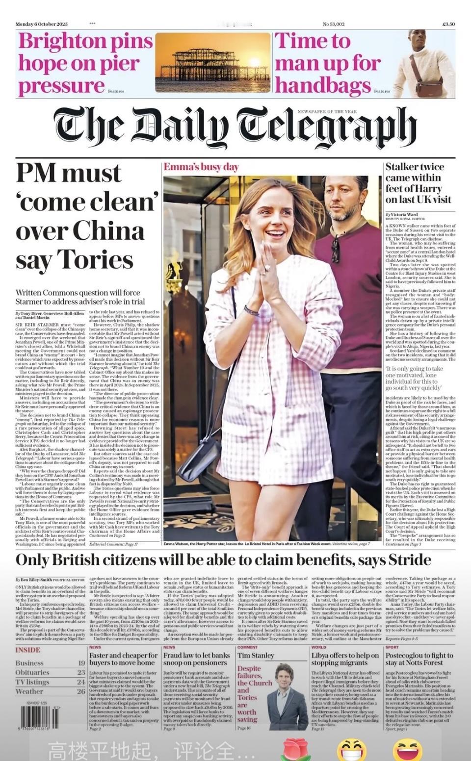 英国这波操作,一边搞事一边内讧,看得人有点懵!中国直接警告:要是用所谓“外国影响力法规”针对中方游说人士, 两国关系要受大影响,还可能遭报复,这态度够明确了吧? 可英国自己这边先乱了,保守党追着工党政府要说法,逼斯塔默首相公开国家安全顾问鲍威尔在“中国间谍案”里的角色。案子本身就离谱,俩被告当庭释放,现在又曝鲍威尔说不能把中国当“敌国”,不然案子都没法审,保守党哪能放过这茬。 说到底,英国一边想拿“中国议题”做文章,一边内部连立场都没统一,一会儿硬刚一会儿又怕案子站不住脚。这种左右摇摆的样子,哪像真想好好处理双边关系? 你们觉得英国工党政府最后会怎么回应保守党的追问?会不会真敢不顾中方警告乱搞?