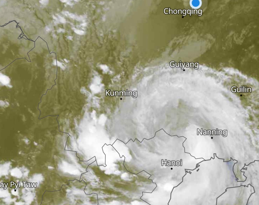 从今天晚上的卫星云图上来看,低压环流云系已经开始影响云南东南部了。比如像云南文山