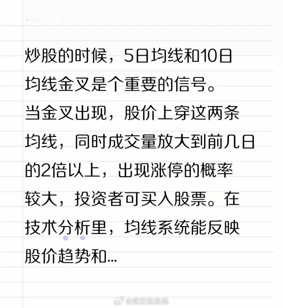 炒股的时候,5日均线和10日均线金叉是个重要的信号。当金叉出现,股价上穿这两条均线,同时成交量放大到前几日的2倍以上,出现涨停的概率较大,投资者可买入股票。