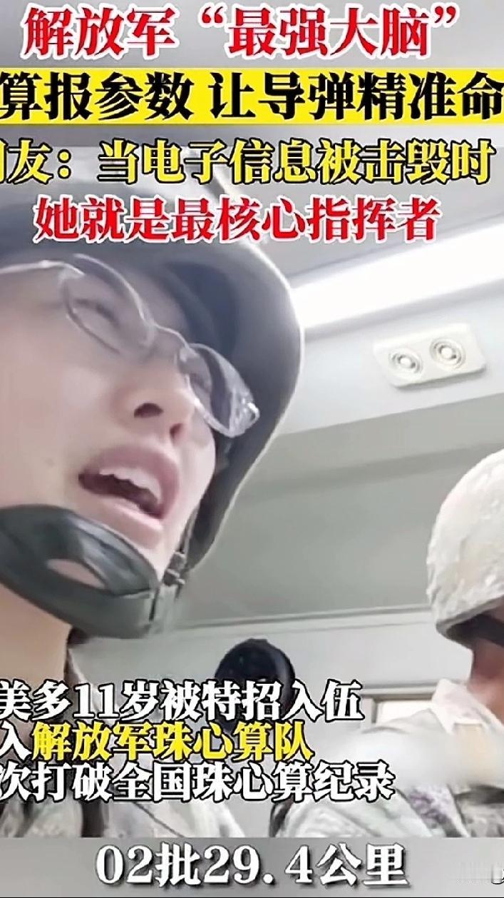我军有一支神秘的部队,是世界其他国家所没有的。它就是解放军珠心算部队。 很多人第一次听到这个名字时,都带着几分惊讶。 有人说这支队伍能在电子系统全部失灵时,用心算完成导弹轨迹修正,让导弹精准命中目标,也有人把它称作我军“最强大脑”。 据《军旅人生》节目披露,珠心算部队于1994年正式成立,隶属于解放军系统内部的一支特殊训练队伍。 自成立以来,他们多次在全国和世界珠心算大赛中取得冠军,打破多项世界纪录。节目中曾报道过队员徐美多的故事,她11岁便被特招入伍,凭借卓越的计算能力获得了七次立功。 其实珠心算部队是一支专注于珠心算训练与认知能力提升的专业化队伍,而不是外界传说中的“战场奇兵”。 这个队伍确实承担着科研、人才培养和数据处理等训练任务,珠心算部队的优势在于培养快速思维、专注力与应变能力,这些素质对于军队的信息处理、后勤核算、战略计算等方面具有实际意义。 这支部队也被看作军队教育体系的一部分。 通过长期训练,他们让数字在大脑中“可视化”,强化大脑反应速度。 这种训练不仅锻炼思维,还塑造了耐力和心理稳定性。 曾有报道,珠心算队员不仅能在比赛中取得佳绩,更重要的是,他们通过训练形成了一种高效、精准、冷静的思维方式,这种能力在任何需要快速决策和数据处理的岗位上都极具价值。 现代战争体系是一个复杂的网络化系统,不会因为一个环节损坏就完全依靠人工计算。 真正的价值在于,当科技再强大,人依旧是核心。 科技可能被干扰,设备可能损坏,但人脑的敏捷与判断力仍然不可或缺。珠心算部队所象征的,正是这种“以人补机”的理念,是人类智慧在高科技时代的一种精神映射。 解放军珠心算队的存在并非秘密,也不神秘,它是我军在人才培养和认知训练领域的一个特殊成果。 最初人们得知这支队伍的时候,甚至给这支队伍带上了神秘的色彩,觉得珠心算队伍似乎有了“超能力”,所以很是敬佩队伍中的队员。 但真正值得敬佩的不是传说中的超能力,而是那些默默训练、持之以恒、将思维磨炼到极致的年轻人。 一个国家的安全从来不只靠钢铁与火药,也离不开头脑与智慧。 珠心算部队的故事让人看到,哪怕在智能化浪潮席卷全球的时代,人类的算力与意志依然有被需要的地方。科技可以取代很多机械的动作,却替代不了大脑的灵感与决断。 有人说,珠心算队是军队最安静的一支力量。他们不在前线开炮,却用大脑进行另一场战斗。 那是一场对极限思维的挑战,也是一种象征,真正强大的国家,不只是有先进武器,更有敢用头脑去算、去想、去拼的人。 这也让其他国家看到我国做为大国的智慧和超远的谋划。 因为现如今科技已经进入每个人生活,计算方式在变得越来越多,所以这支队伍才会受到这么大关注。 但无论何时,科技都不可能凌驾于人脑之上。 最强的“电脑”不是机器,而是那些能在寂静中把一串数字算成奇迹的人。 来源: 央视《军旅人生》栏目报道《徐美多:用心算出精彩人生》