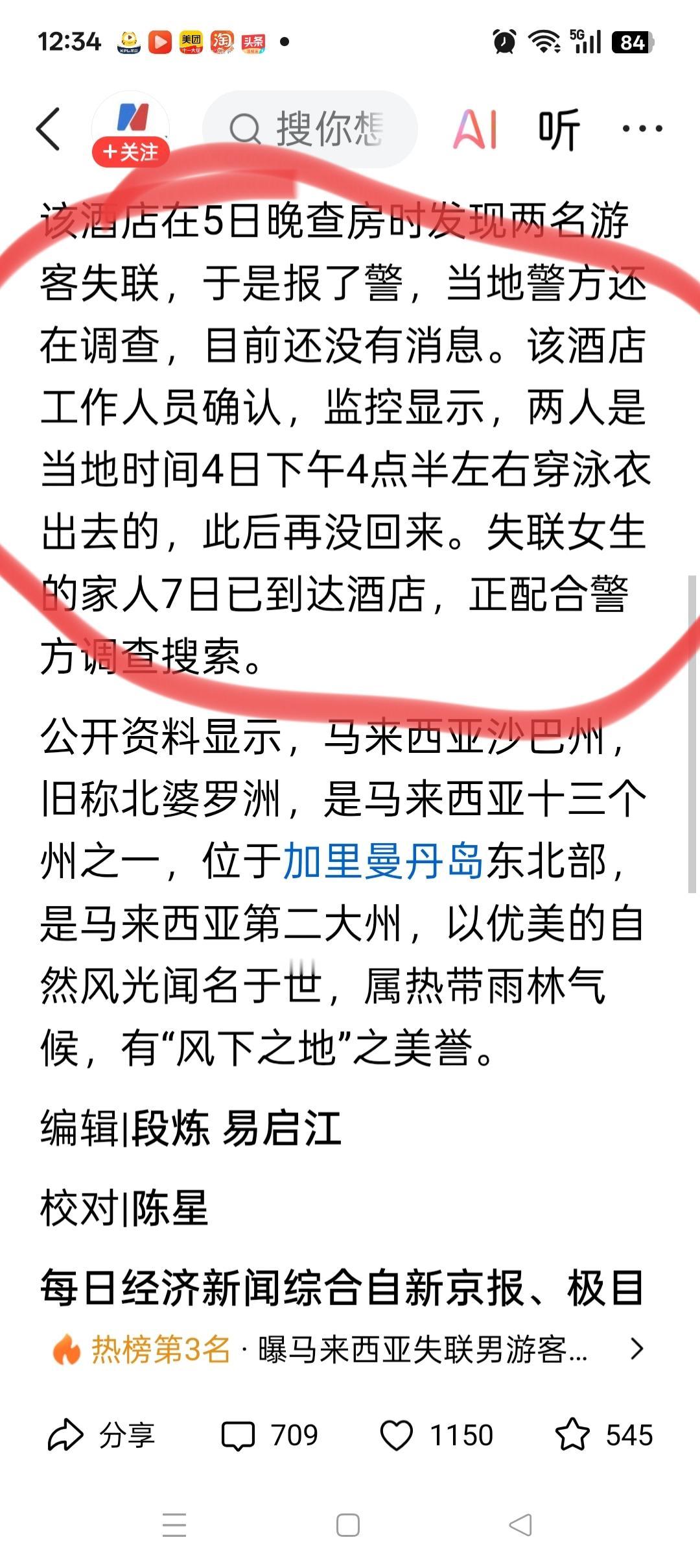 2名中国游客在马来西亚失联3天,目前已知的3个细节: 1、女孩最后发的一条信息是