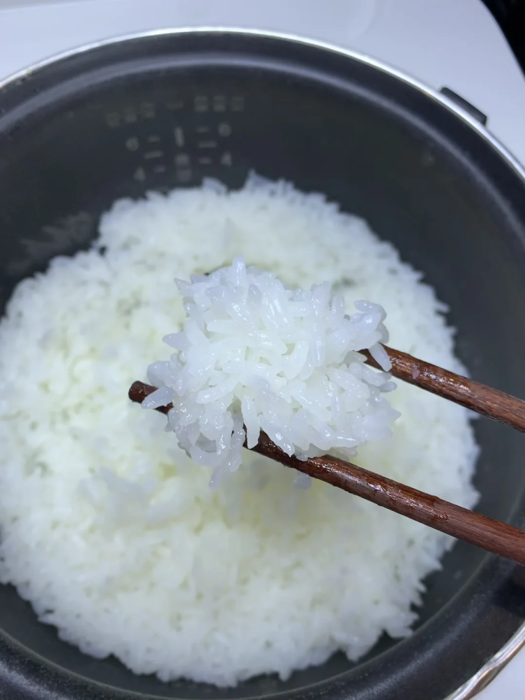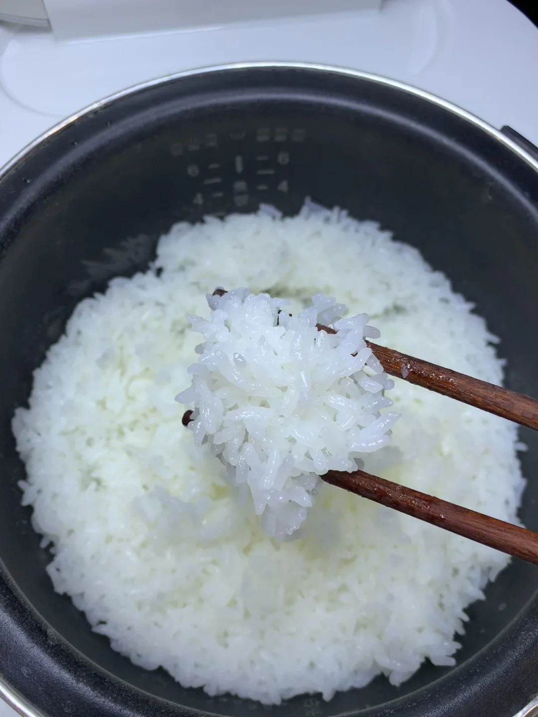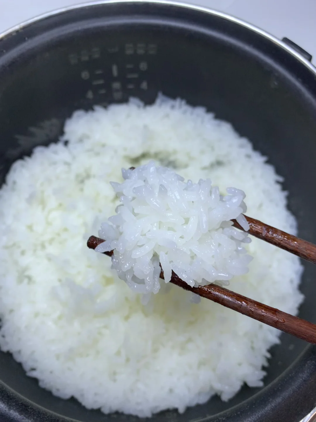 按平时的水量煮,开盖瞬间我直接“哇”出声!热气裹着浓得化不开的米香飘满厨房,米饭像铺了层柔光,表面油亮亮的,用勺子轻轻一挖,糯叽叽地粘在一起,却又颗颗分明不粘勺。