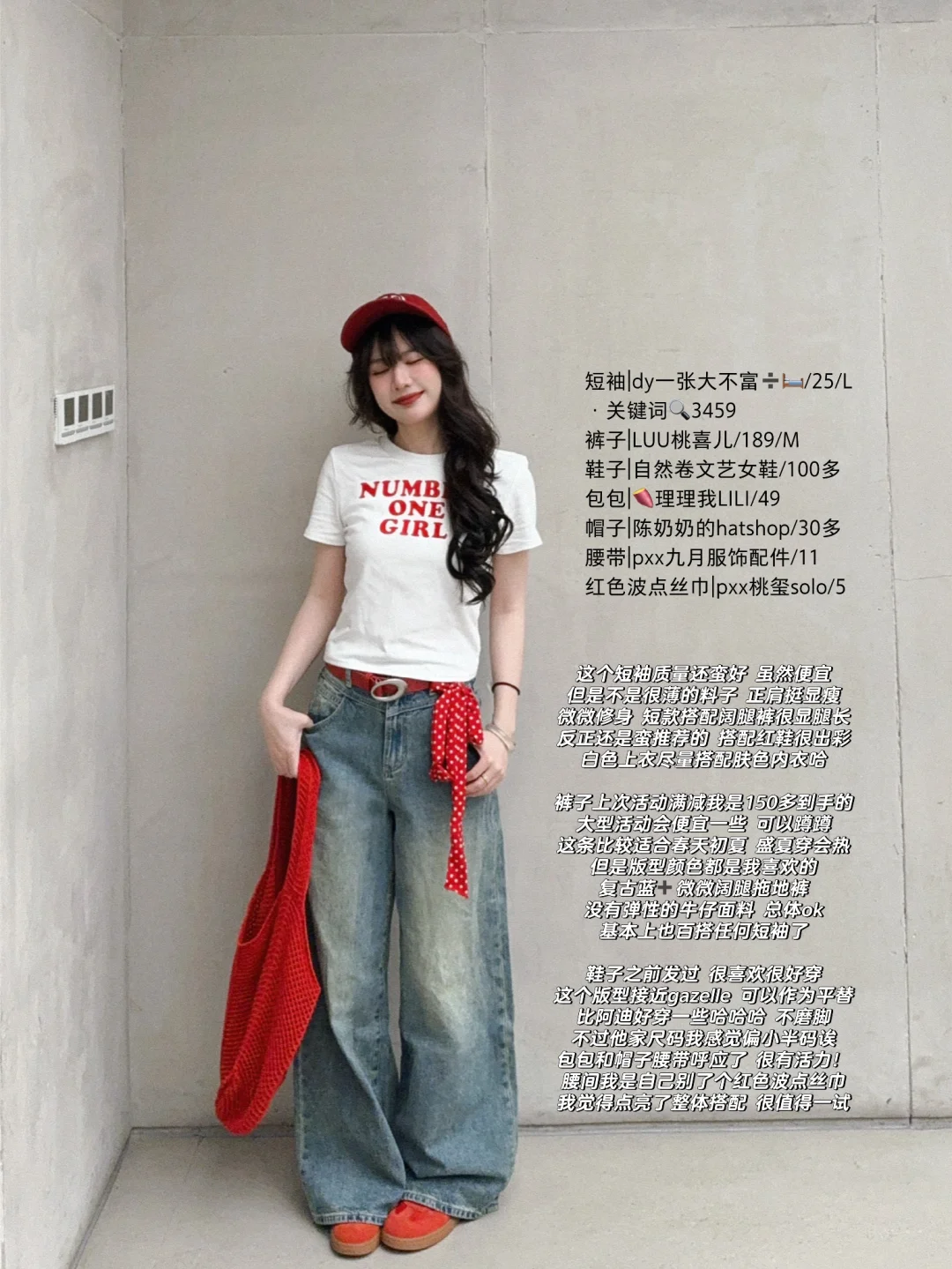 168/107 分享两件超级无敌便宜的短袖哈哈 虽然一分价钱一分货但是这两件真的还可以 我反正觉得挺惊喜的~ 今天这期适合不喜欢穿裙子的姐妹 依靠一些配饰来提升整体氛围 比如 帽子 丝巾 腰带 和包包 个人觉得拿不准色彩穿搭的姐妹 第一可以尝试红色 因为这个颜色比较好驾驭 而且很提气色 拍照很出片(随便调个胶片滤镜就很美) 红色搭配牛仔蓝 基本上都不会出错 在此基础上 还可以加入别的颜色的元素 比如粉色黄色绿色 丝巾除了围在脖子上 也可以系在包上或者当成腰带 真的非常点睛之笔!!
