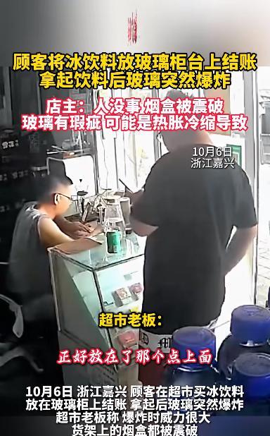 “活久见!”10月6日,浙江嘉兴,一位男子在商店里买了一瓶冰镇饮料,放在玻璃柜台上准备结账时,玻璃却突然炸裂,老板和顾客都傻眼了,网友:这下彻底解释不清了! 如今虽然已经到了秋天了,但是有些地方的气温却依然特别高,在这种温度下,就容易出现“热胀冷缩”的情况,甚至连玻璃都发生爆炸也不是不可能的事! 据这位商店老板所说,当时这位顾客拿着一瓶冰镇的易拉罐饮料准备结账,他随手把饮料放在门口的玻璃柜台上之后,顾客就付了款。 没想到他拿起饮料准备离开的时候,玻璃柜台却突然发生了爆炸,整个玻璃顿时飞溅的到处都是,柜台里面的烟盒甚至都被巨大的力量震破了。 老板和顾客顿时都傻了眼,也没有人碰到这个玻璃,怎么好好的就发生爆炸了呢?事后老板才知道,他的这个玻璃柜台有缺陷,上面可能带有硫化镍。 而顾客放饮料的位置刚好是在有缺陷的那里,结果玻璃柜台在气温38度的高温下,又接触到了冰冷的饮料罐,结果一冷一热最终导致发生了爆炸。 好在两个人都没有因为这次的爆炸而受伤,这也算是不幸中的万幸,所以说像玻璃等类似的物体,还是要特别注意热胀冷缩的情况,一不小心就可能带来危险! 而在购买这种类似的玻璃柜台的时候,也要买比较安全的,有时候便宜没好货这句话,绝对不是空穴来风! 信息来源:《顾客将冰饮料放玻璃柜台上结账 拿起饮料后玻璃突然爆炸》河南法治报