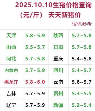 东北要开涨?2025.10.10全国各地猪价信息三农农村