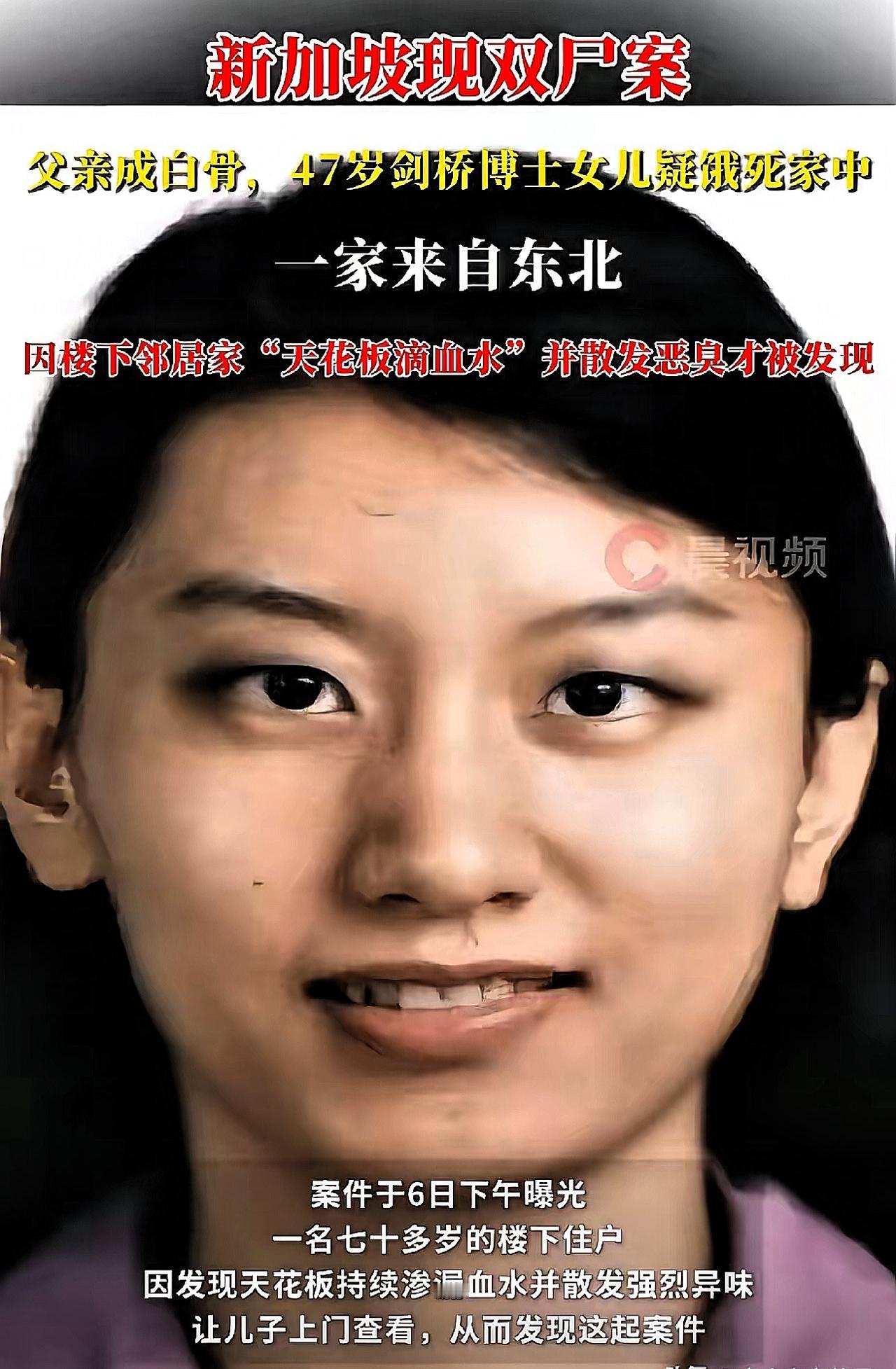 这事儿看得人心里堵得慌!剑桥女博士和父亲双双离世,一个多月后才被发现,父亲遗体都成了白骨,太让人揪心了。 47岁的徐娜曾是妥妥的学霸,从新加坡国立大学读到剑桥博士,可谁能想到她会落得这般结局。邻居说2017年她妈妈走后,父女俩就几乎不出门,也不跟人来往,徐娜疑似得了精神病,生活全靠父亲照料。 想来该是父亲先离世,没法自理的徐娜没人照顾,才被活活饿死的。多优秀的姑娘啊,年轻时照片清秀又精神,真不知道她到底经历了什么,才把日子过成了这样。更让人想不通的是,妈妈不在了,父亲为啥不带着她回中国?好歹有亲人能搭把手,也不至于走到这步。 独居老人和特殊群体的生活状态真该多被关注。你们身边有长期独居、很少和人来往的邻居吗?会主动多留意一下吗?