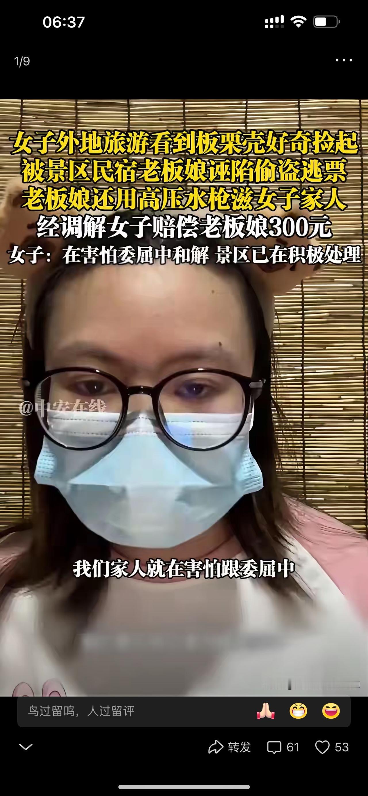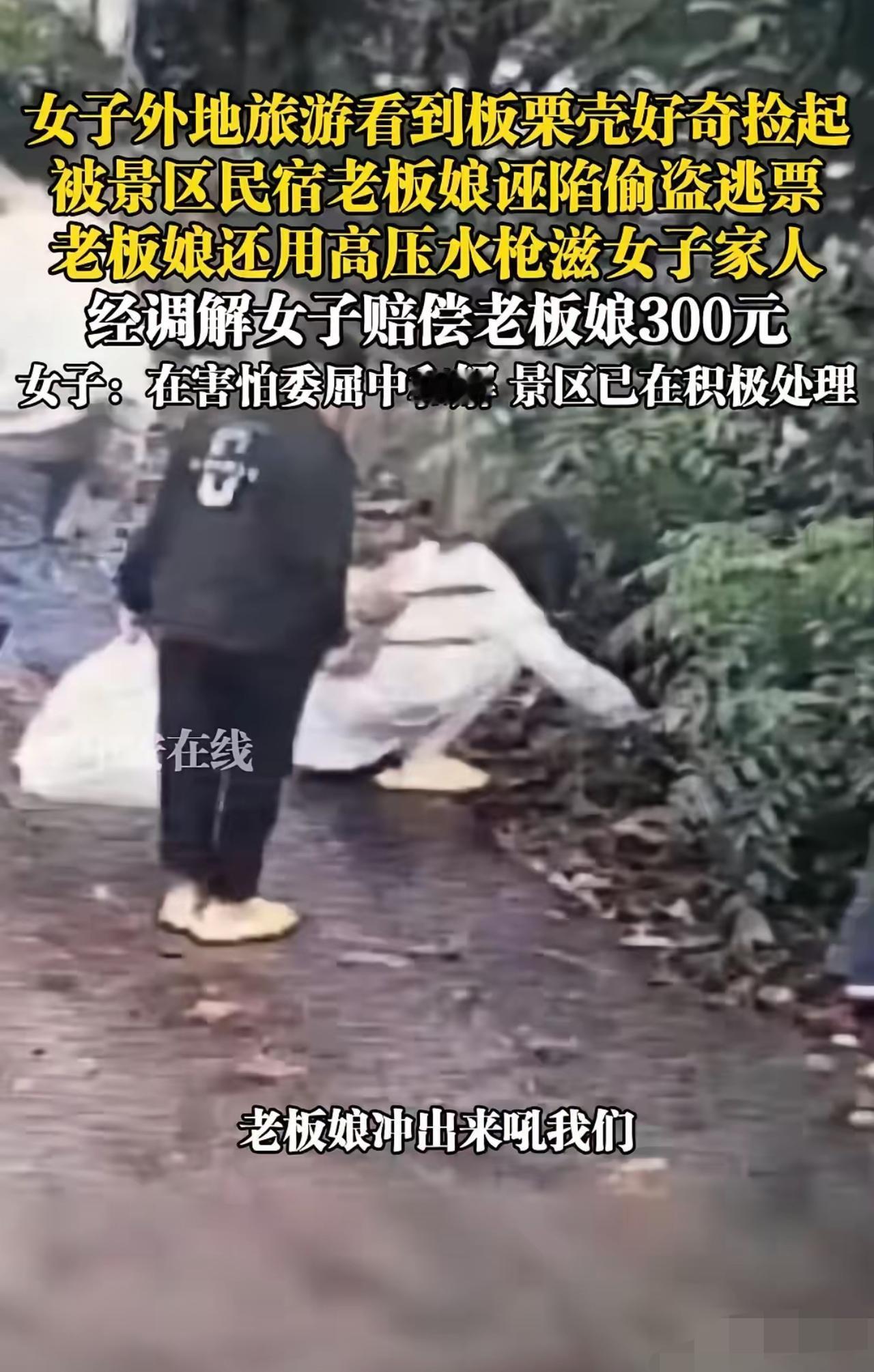 花果山板栗事件这后续,真是越看越气人!老板娘居然还想告游客,这操作谁能懂? 据说当初景区调解时,双方签了协议不让把事捅上网,结果现在倒打一耙。这事从头到尾就是她故意找茬,游客没住她家民宿,她眼红就拿“捡板栗”说事儿,骂人家是小偷。 更离谱的是,被轻轻推了下就躺地上,说怀孕见红了,张口就要2000块。景区像是不敢得罪她,最后让游客赔了300块营养费。闹得全网都知道,连云港文旅估计都想捂脸,结果也只罚了整改。 可这整改纯属敷衍,换个“你好,花果山民宿”的名字就完事了,难怪当地人都看不惯。这哪是整改,分明是变相继续做生意。 你们说,这种民宿就该严肃处理吧?要是遇到这种事,你敢跟她硬刚吗?