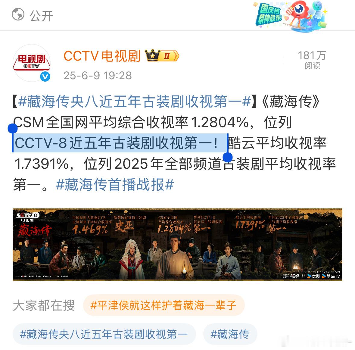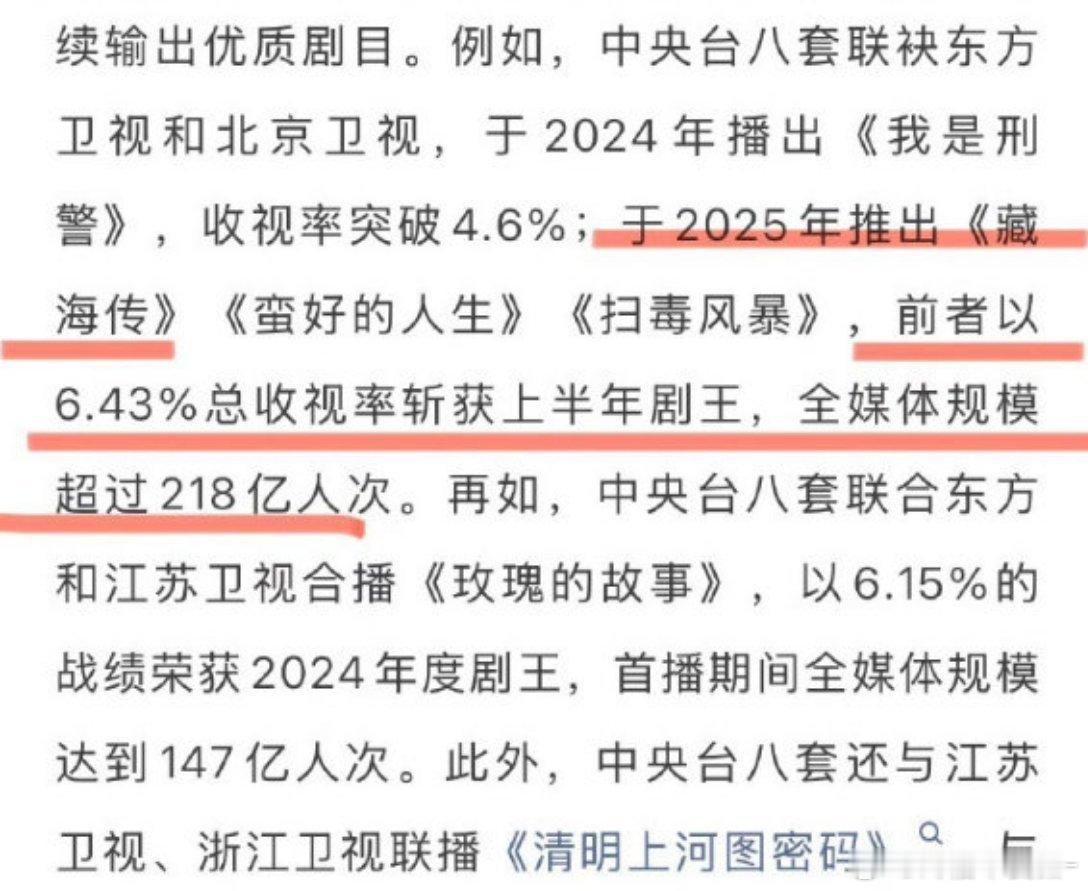 太牛了啊啊啊啊 恭喜《藏海传》!!!近两年收视率位列第一,《藏海传》不愧是台、网、口碑、热度、文化出海的全球大爆剧![互粉][互粉]藏海传总收视率超过6%