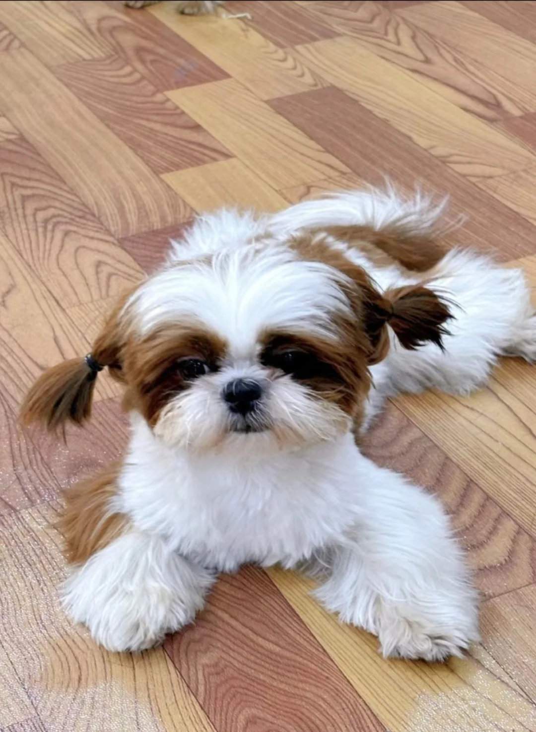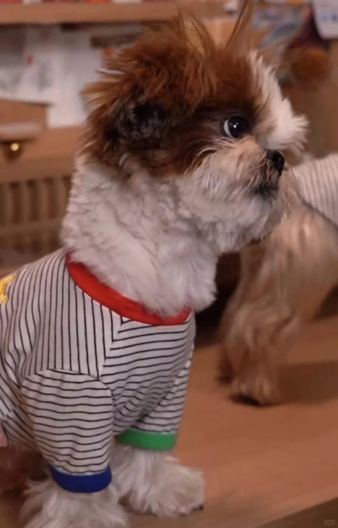 这几只小毛球也太会卖萌了吧!扎着小辫儿的狗狗趴在木地板上,穿条纹衫的小家伙歪头杀,还有戴粉色小帽子的小可爱…你最喜欢哪一只呀?