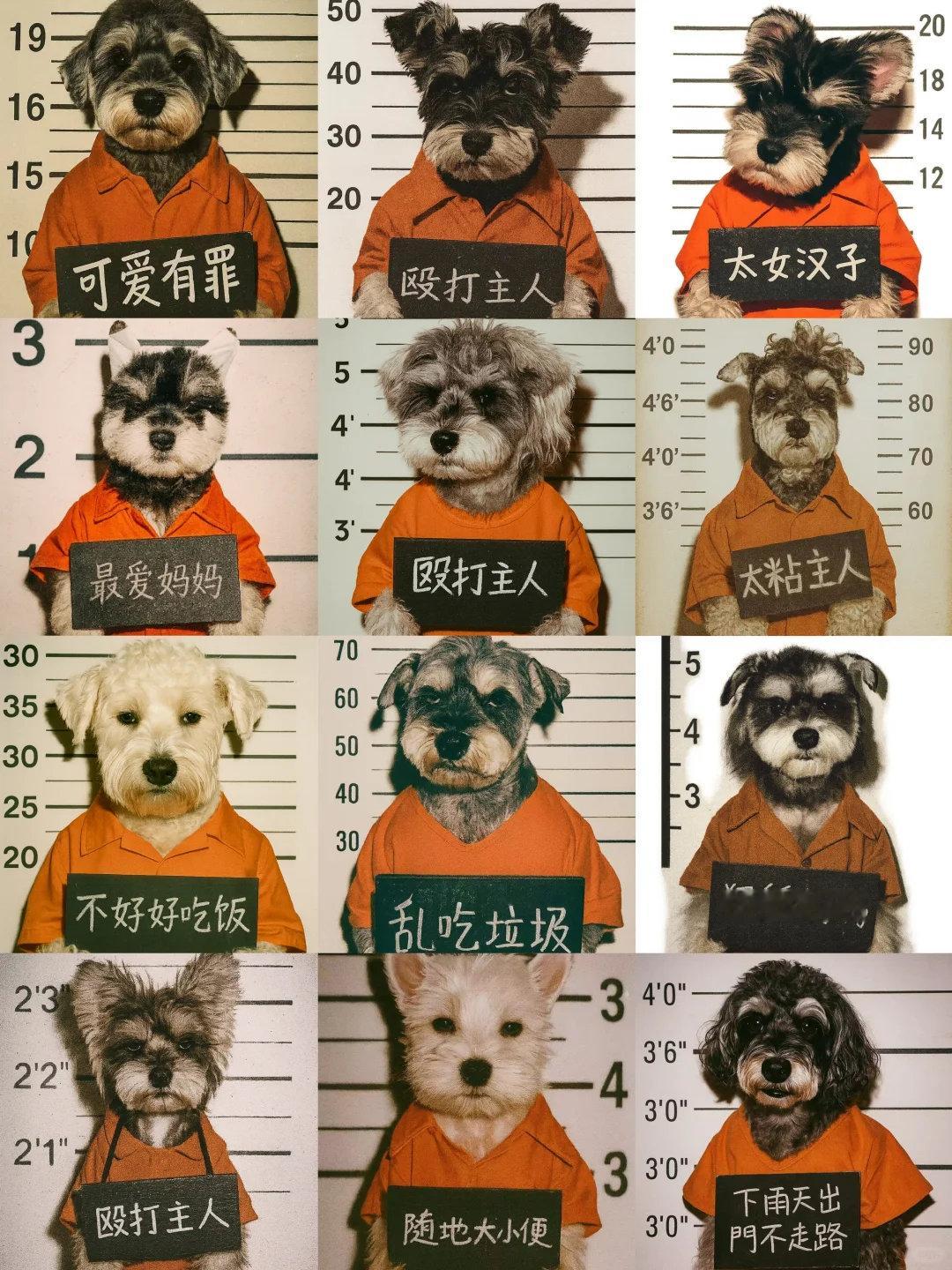 雪纳瑞们的“入狱照”来啦!“殴打主人”“随地大小便”…原来可爱小狗也有这么多“罪名”?你家毛孩子有什么“罪行”要曝光吗?