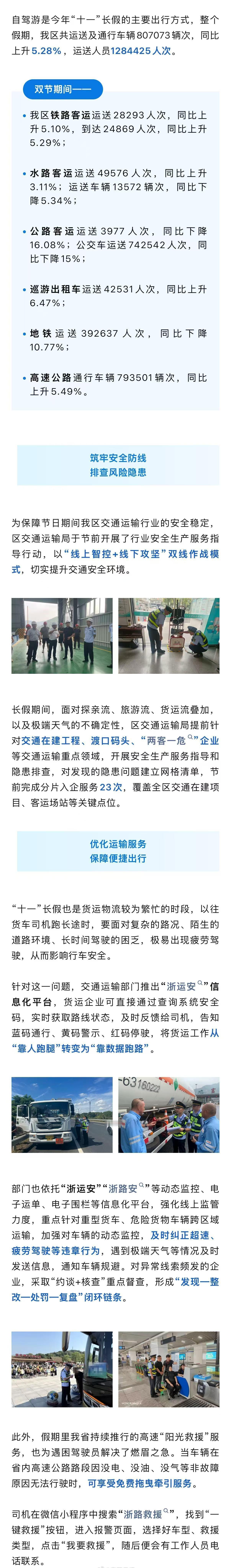 【128万人次!富阳长假“成绩单”来啦】富有瞰点富春民生汇 今年国庆与中秋假期重叠,广大群众出游欲望增强,一起来看富阳区假期交通数据↓↓↓