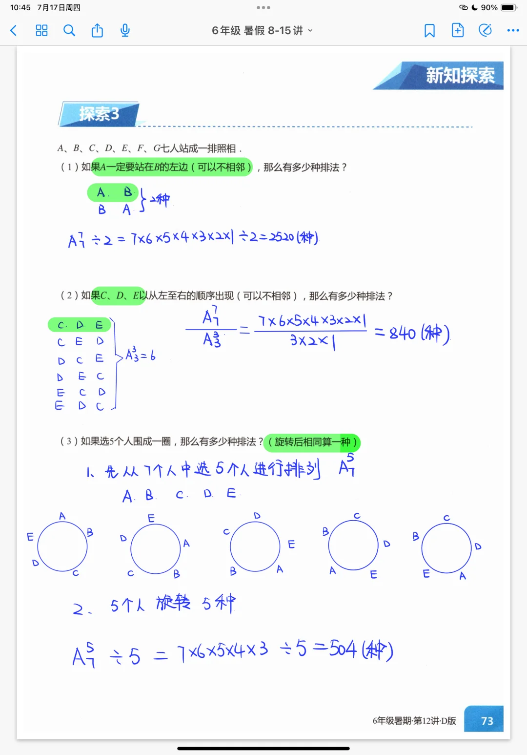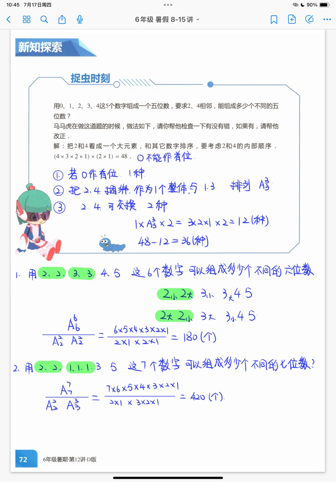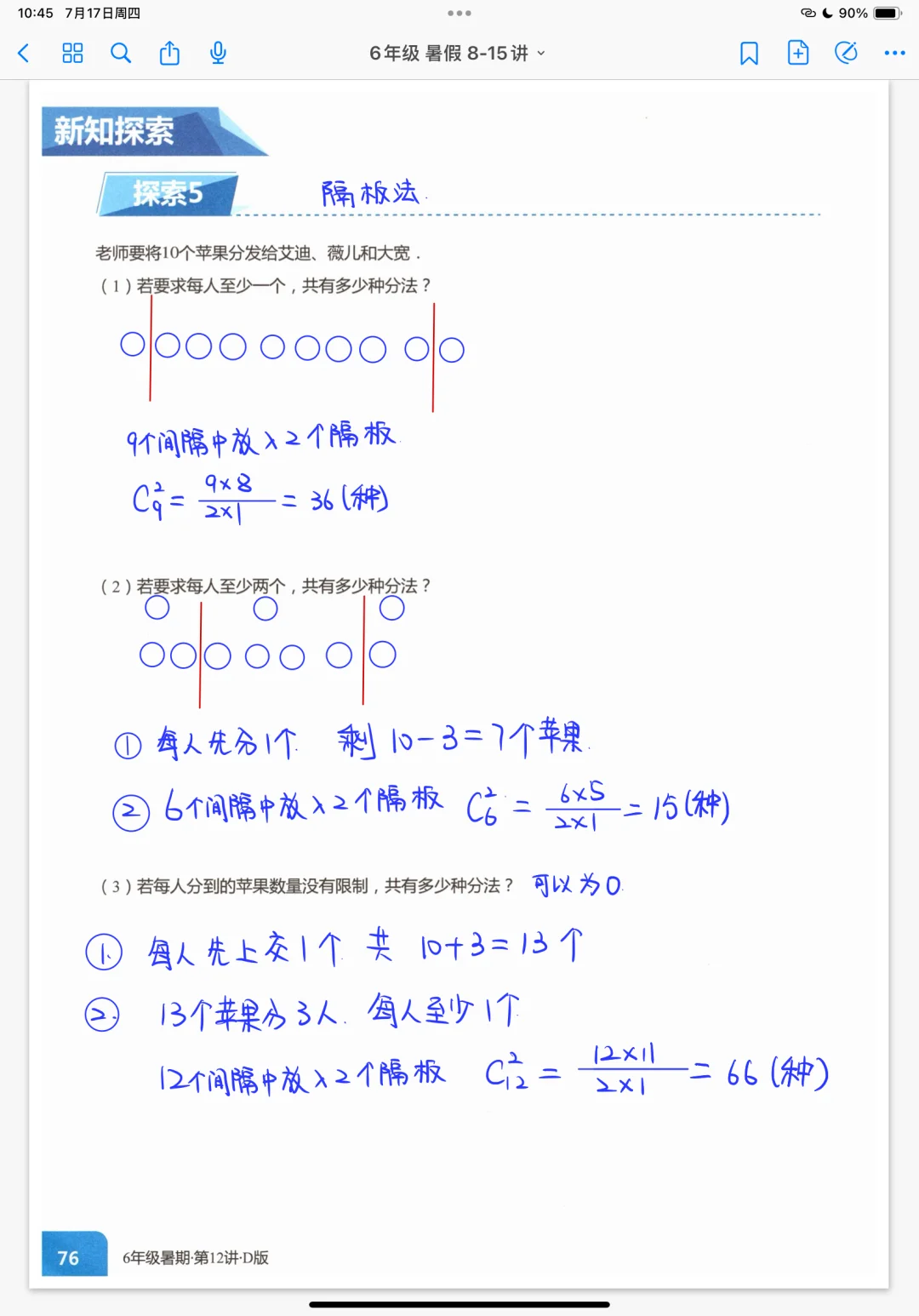 《排列组合》五年级暑假奥数创新班课堂笔