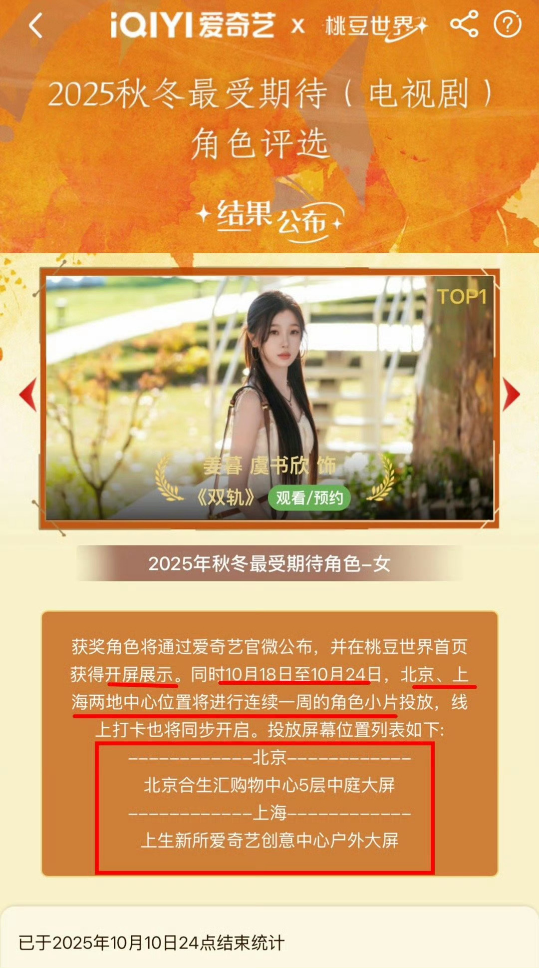 爱奇艺2025秋冬最受期待的女性角色获得者虞书欣姜暮 👏🏻恭喜我们小姜暮!在爱里长大的月亮🌙!网剧双轨