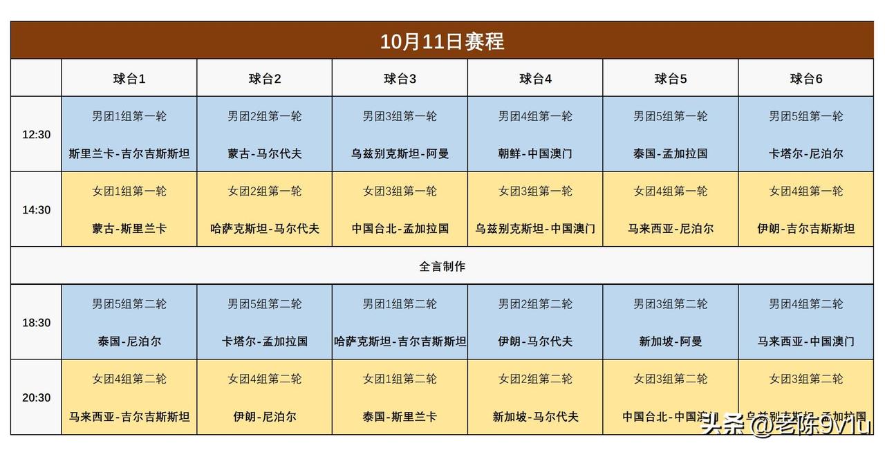 2. 乒乓球亚锦赛开幕国乒目标夺金:10月11日,乒乓球亚锦赛在印度布巴内斯瓦尔开幕,今年只角逐男团、女团2个项目。国乒男队是卫冕冠军,女队是上届亚军,目标夺金。国乒及上届前6名暂不出战,“神秘之师”朝鲜队出战男团。30支队伍11 - 12日进行首阶段较量,12日晚1/4决赛,期待国乒登场。