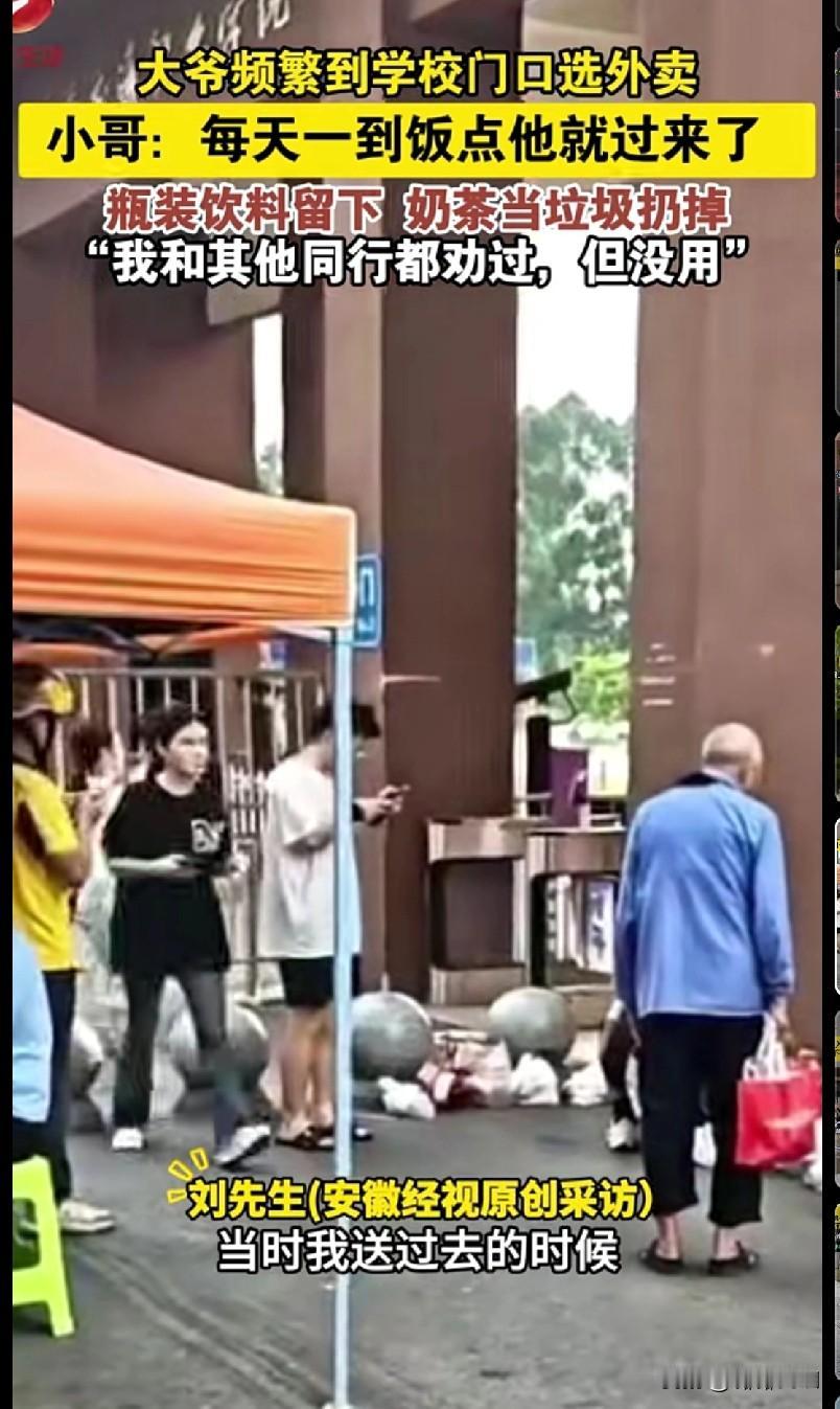 “家人们来看看这操作!学校门口有位大爷天天饭点来‘选外卖’,瓶装饮料留下,奶茶直接当垃圾扔,外卖小哥劝了好几次都没用。” 咱就说这操作多少有点迷,外卖是给学生的,大爷这天天来“挑拣”,不仅浪费还影响环境。 网友们都议论开了:“这是把外卖当成免费饮料站了?” 咱也不是说心疼那点饮料,就是这行为确实不太合适。 你们遇到过这种让人哭笑不得的事吗?快来说说,让我也涨涨见识!
