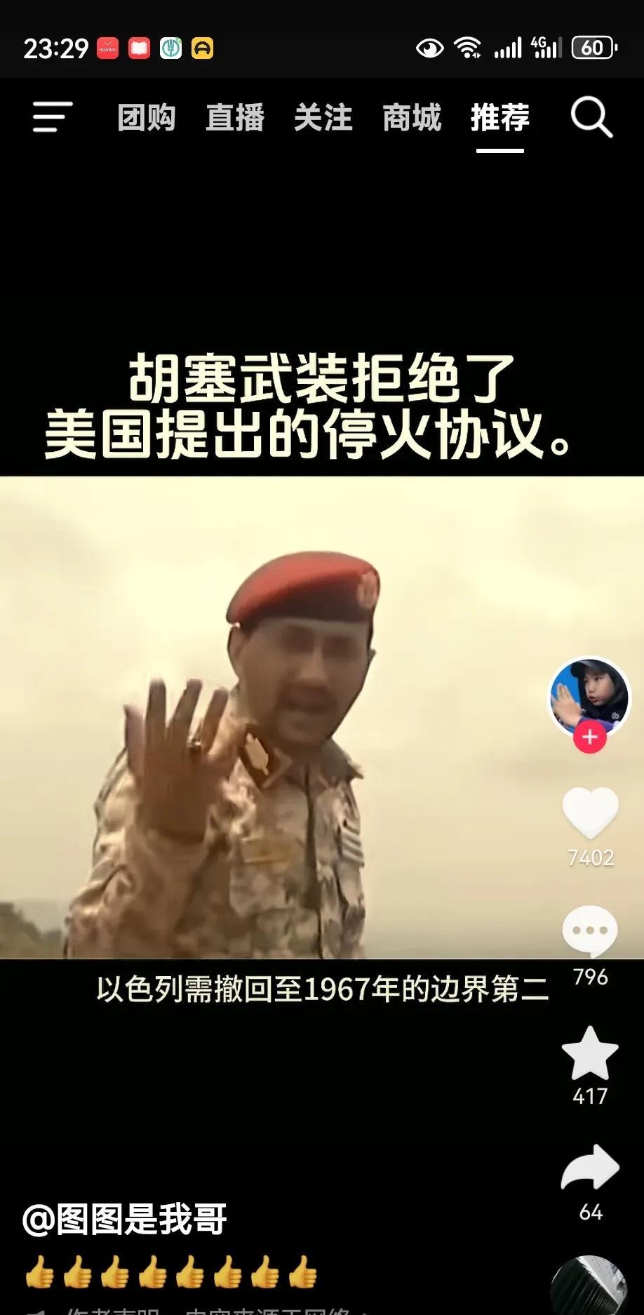 胡塞武装对美国提出的停火协议提出质疑,要求美国达到三个要求,否则会加大打击力度! 胡塞武装发言人昨天对特朗普喊话,要求美国必须达到三个条件, 第一:以色列需要拆回到1967的边界。 第二:赔偿1000亿美元作为战争后重建费用。 第三:赔偿1000亿美元作为学校和医院重建和启动资金。 上面三个要求必须答应,不然对停止协议内容不予认可,胡塞武装就是胡塞武装,真有一套,不答应他们要求,他们会继续与以色列和美国硬刚,目前美国和以色列没有回应,现在问题给特朗普了,需要特朗普作出决定的时候了! #胡塞再袭以色列# #胡塞喊话特朗普,必须答应三个条件#