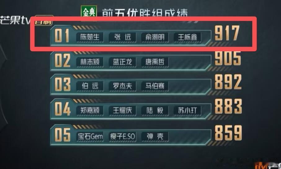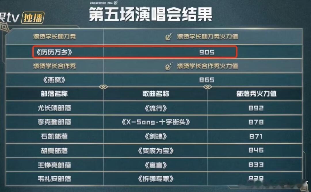 披5五公,已知快乐老咖两个舞台总分1765,减去《送流水》的863,可知《我的快乐》得分902,应该是披五唯一个上900的舞台。