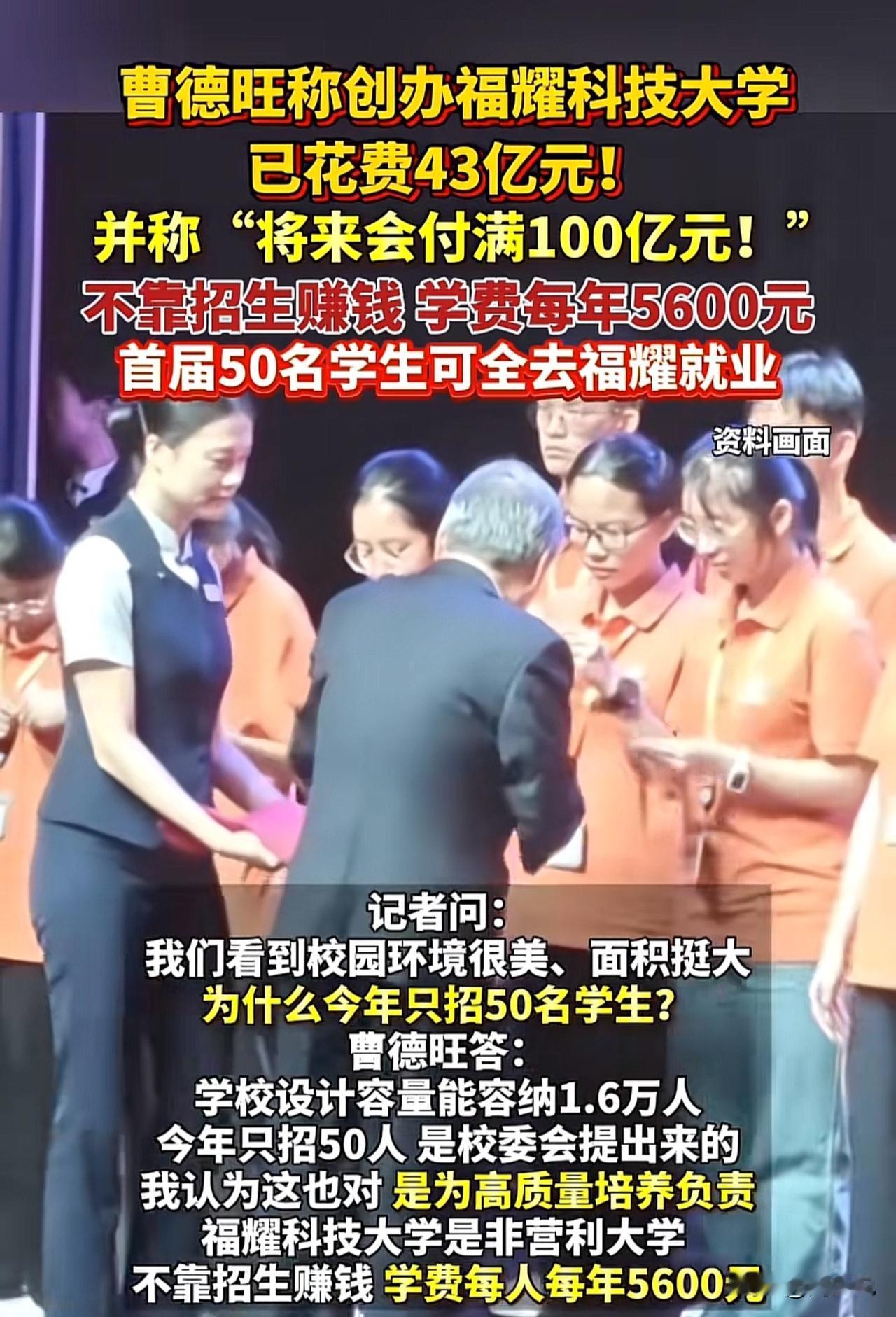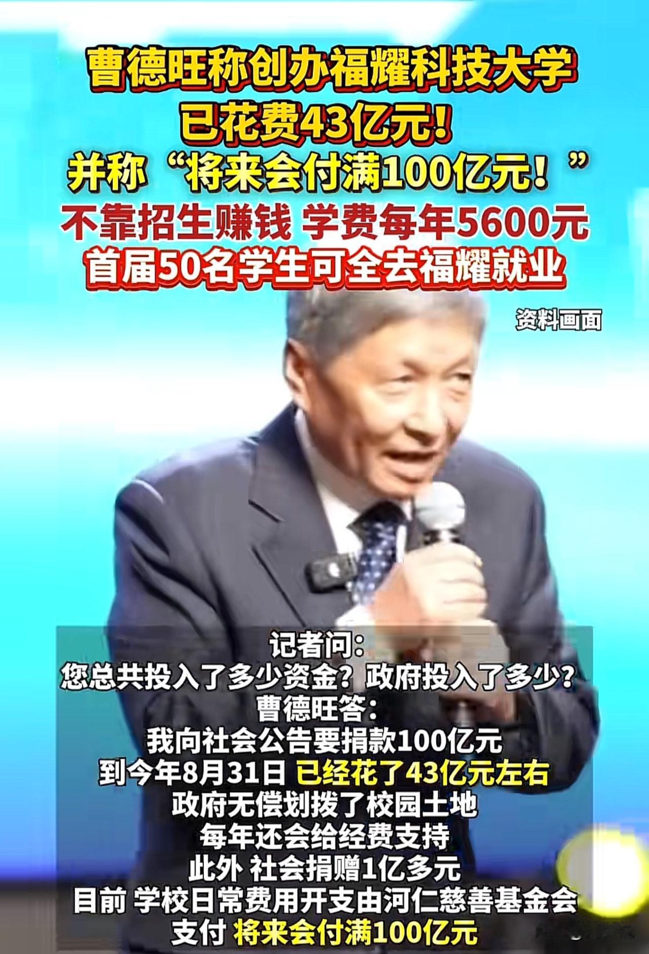 “确实下大血本了!”近日,曹德旺称创办福耀科技大学已花费43亿元,而且“将来会付