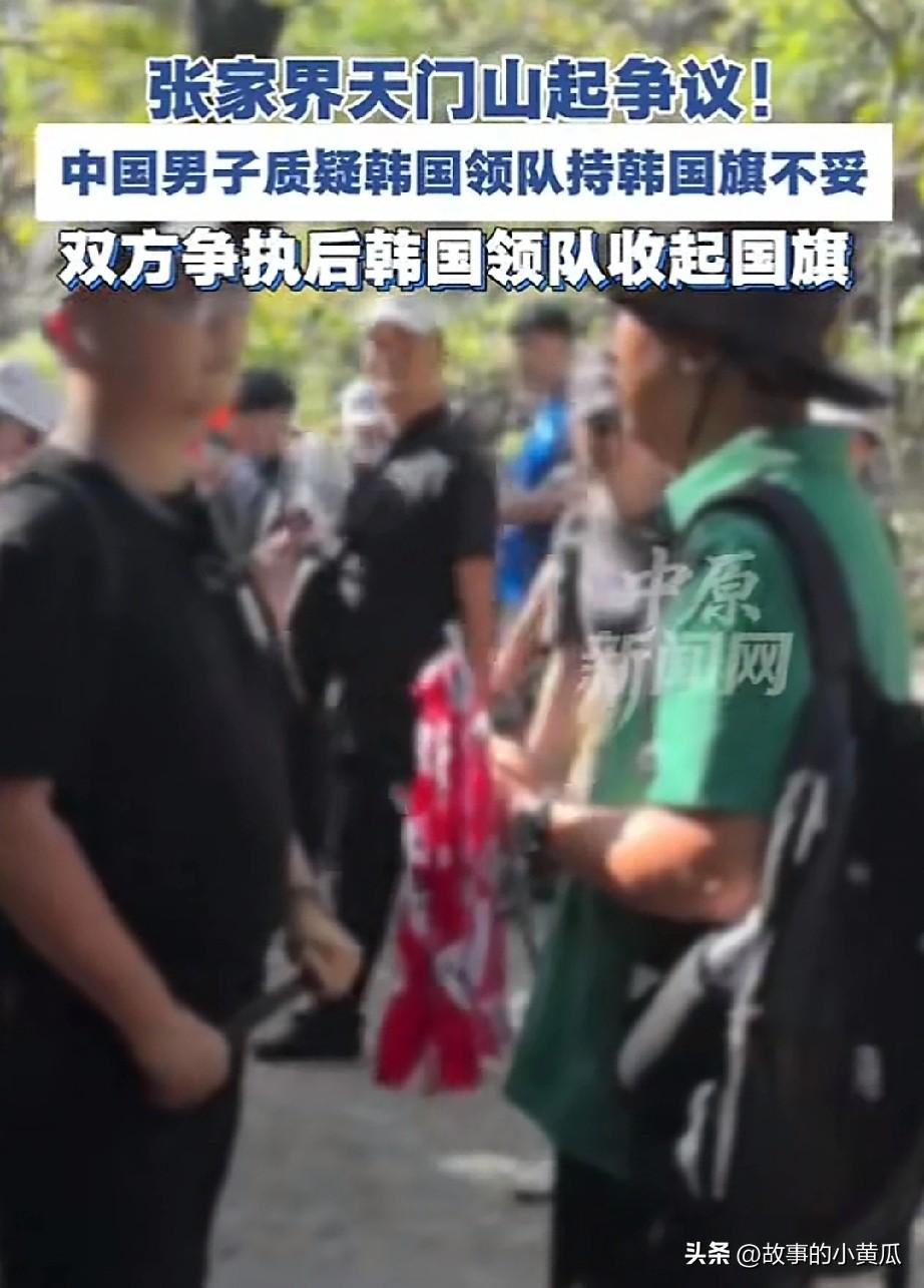 男子质疑韩国领队持韩国旗不妥 双方争执后韩国领队收起国旗