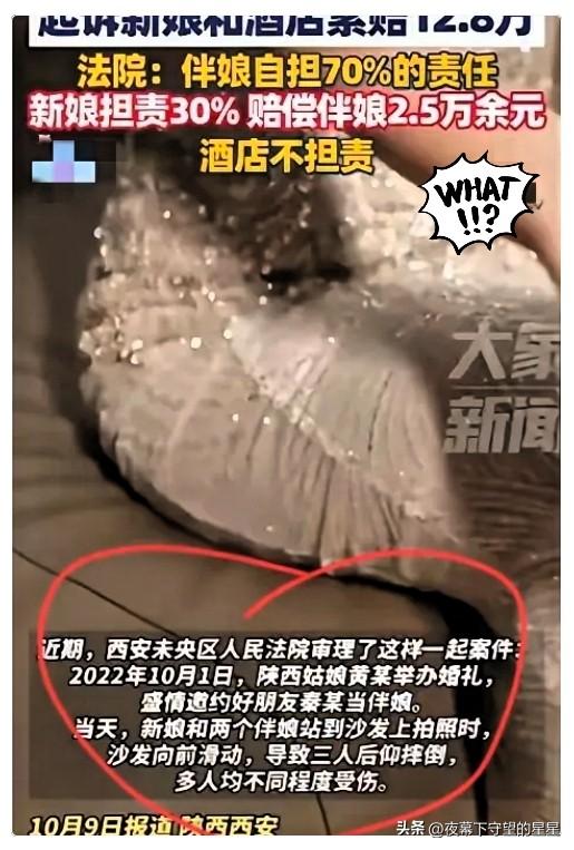 最近火爆的西安婚礼事件 真是让人无语 陕西西安发生一起女子婚礼上闺蜜摔骨折,新娘只顾婚纱的事情。伴娘摔倒骨折,新娘说“婚纱没地儿摆了”,还问“没摔坏吧”,这是什么心态? 伴娘在婚礼上摔倒了,胫骨骨折了,这本是件令人心疼的事儿。可新娘打电话过来询问情况时,却只关心婚纱有没有沾地,还一副理直气壮的样子,说“自己找酒店去,我没逼你”。 小陈觉得,既然你现在结婚了,我们曾经的友情也就没了,那你就不要打扰我的生活了,可以吗? 按照法律来讲,小陈这边应该自担70%的责任,她摔倒后又滑了一段距离,这属于自伤了。但小陈更想要的是一句道歉,一句关心,而不是冷冰冰的算账。 其实友情从不是一场“等价交换”,却需要真诚与在意来维系。大家在生活里,有没有过被朋友的小举动暖到,或是在矛盾后重新理解彼此的经历?不妨在评论区聊聊,让更多人相信,真正的情谊永远经得起时光和小事的考验~