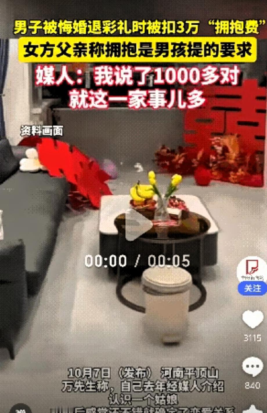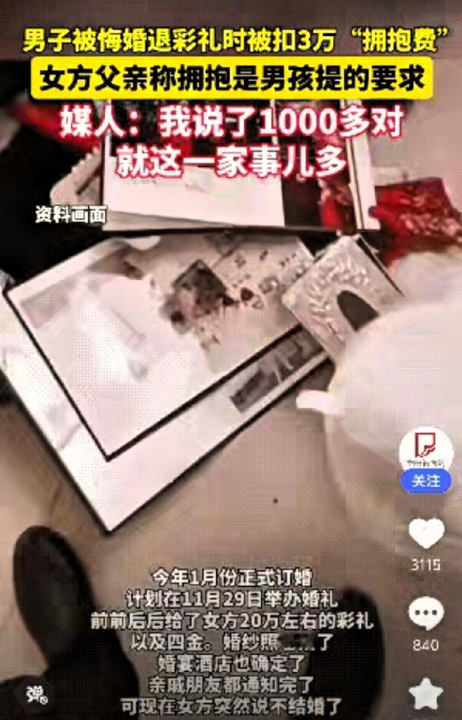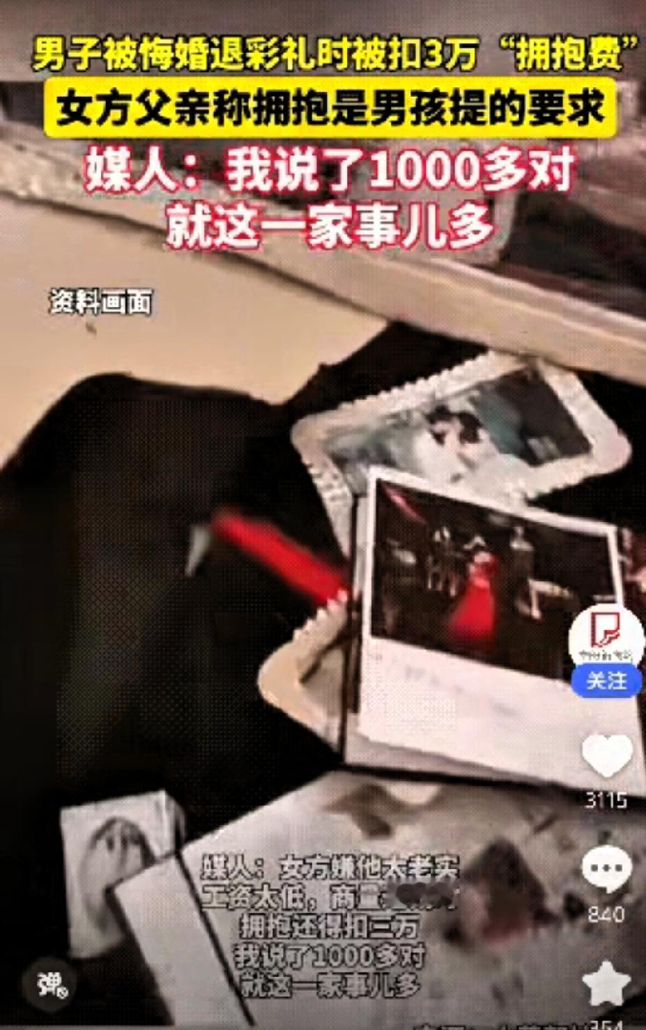 大千世界,无奇不有。真是啥人都有,太奇葩了!偏巧有这种人,让你们给碰到了,是缘分吗? 河南平顶山一位小伙订婚 ,订婚彩礼加上几金,总共给女方花了二十万右,正当他们准备筹备婚礼时 ,女方却悔婚 ,她们奇葩的理由是嫌弃男方工资低 人太老实 ,退彩礼还得扣除彩礼中的3万“拥抱费” ,网友称:没结成婚也算是幸运吧!这样的女孩以后谁还敢娶?友友们你们说这女孩的理由合理吗?