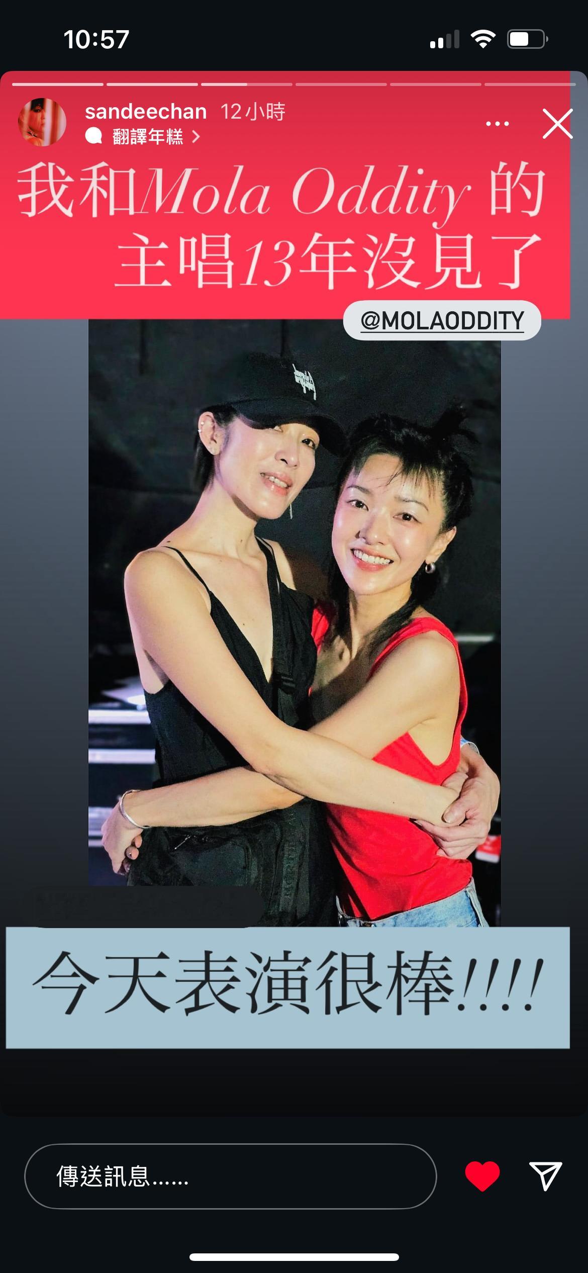 陈珊妮晒和郭采洁合照👭昨晚郭采洁带乐团「MolaOddity」在秋OUT音乐