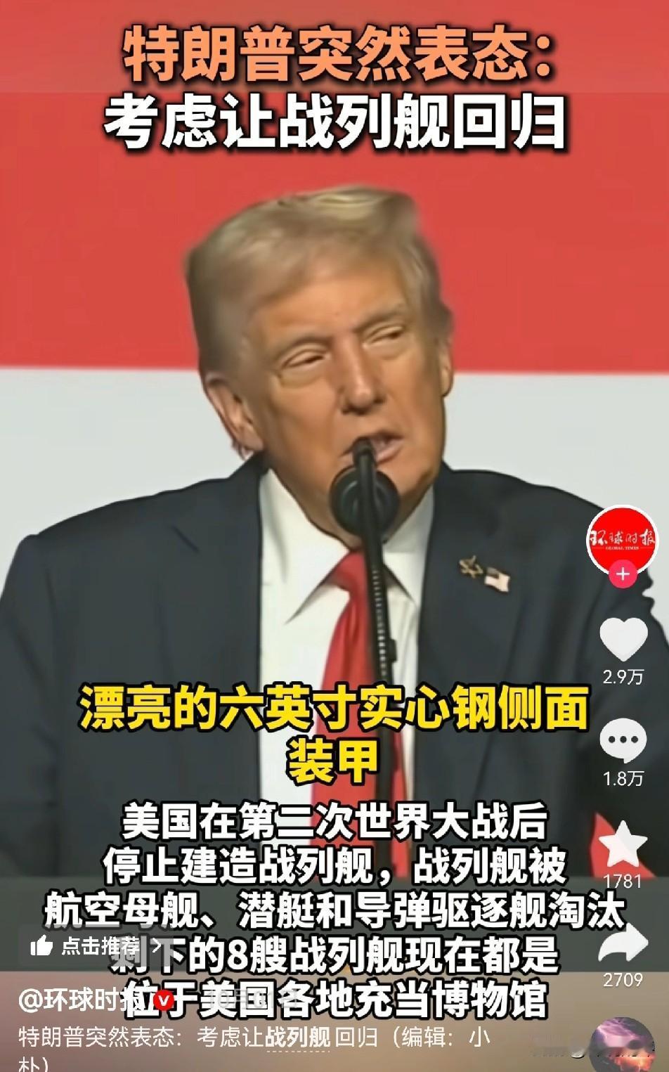 特朗普准备让战列舰回归了。 这让我想起前段时间美国启动的“体能训练”,这是要把