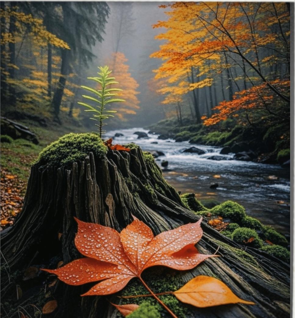 上联:霜染层林铺锦绣 下联:??🍂🍂💧💧 木头上的枫叶带着晨露,像秋姑娘不小心打翻的胭脂盒——你镜头里的秋天,藏着怎样的小惊喜?