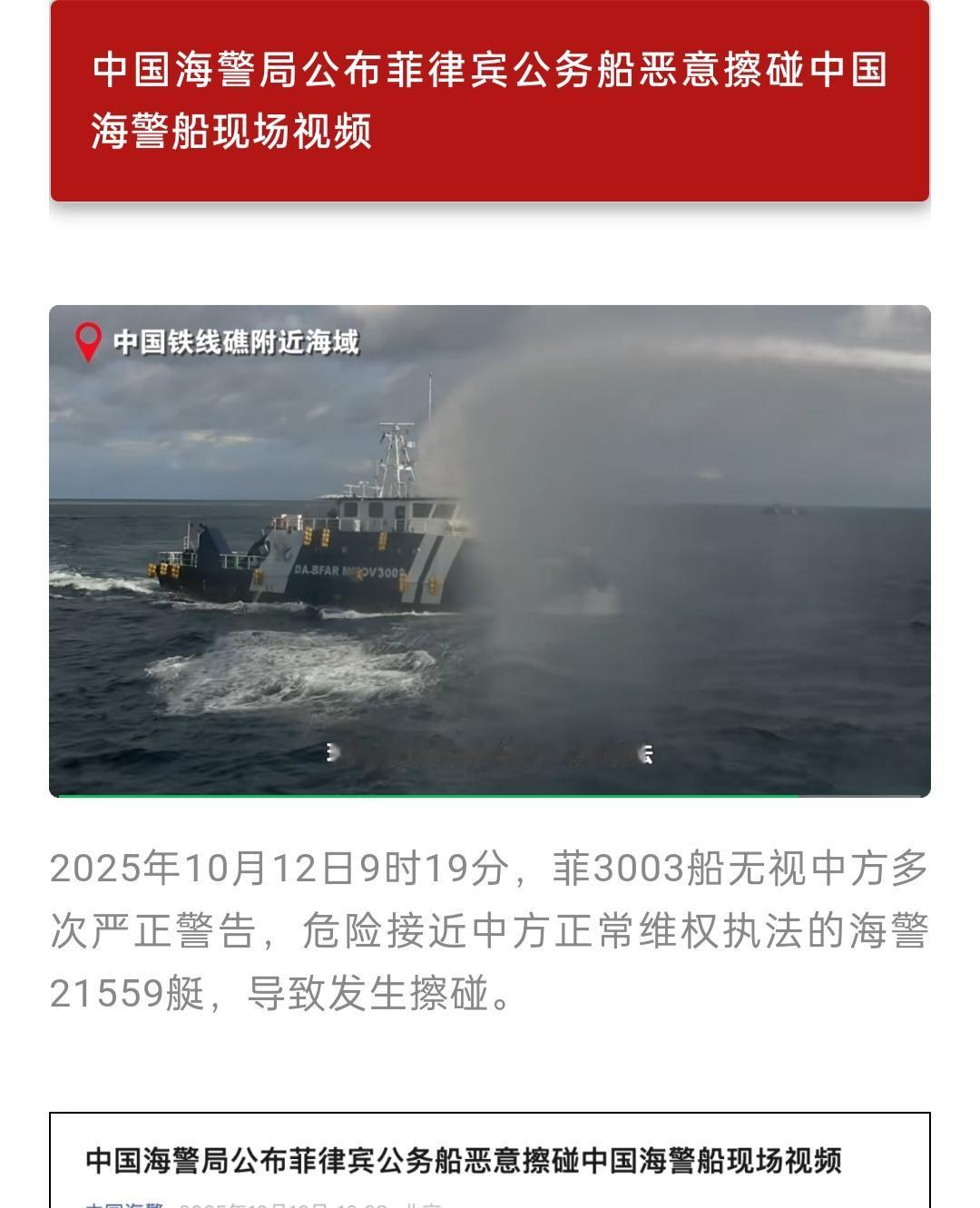 菲律宾又惹事端 2025年10月12日9时,菲3003船无视警告,危险接近我国正