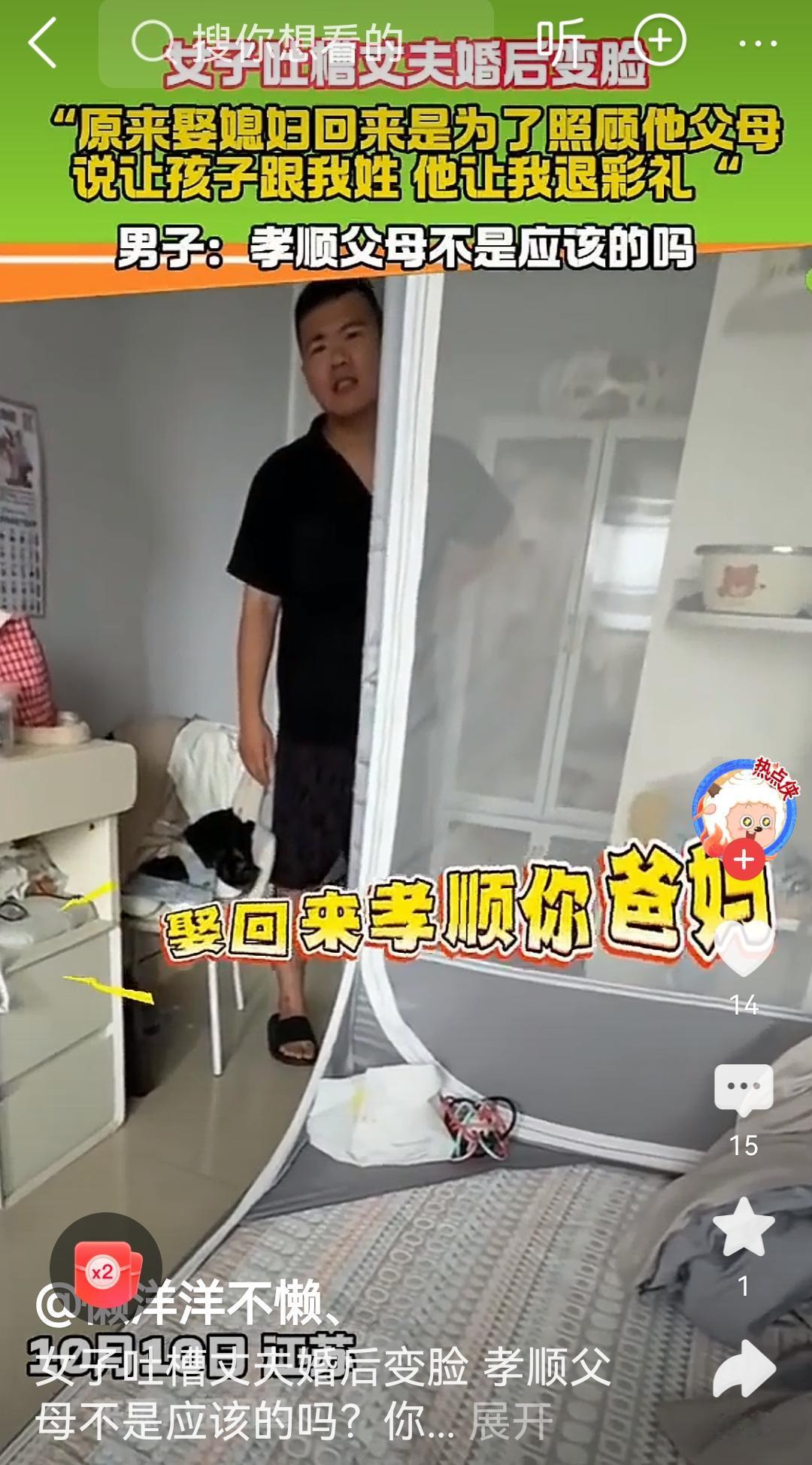 女子发视频称男子婚后变脸 男子认为娶回的就应该孝顺自己的父母 结果女子阴阳怪气的 弄得男子暴跳如雷 那大家认为媳妇该孝顺公婆吗?