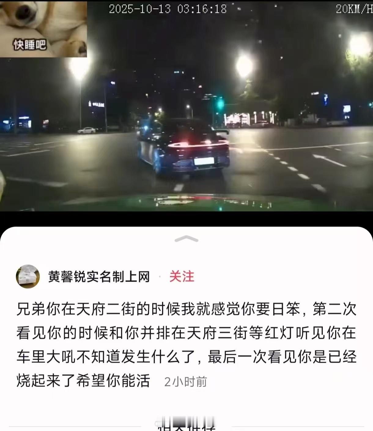 5、另一个评论区看到一些内容,有第三方视角,这个人可能一直在事故车后面,疑似发现开车有问题,第一转弯的时候车就非常快的切入,车辆不稳的时候并没有减速还在冲。然后第二次遇见觉得他情绪不稳定,第三次已经是事故了。如果他说的就是这个事故车,这里就问题大了。这车主当时怎么了?需要当天和他一起吃饭或是出来的人给说一下,喝没喝酒,是可以问出来的。 包括警察他们的初步判断。