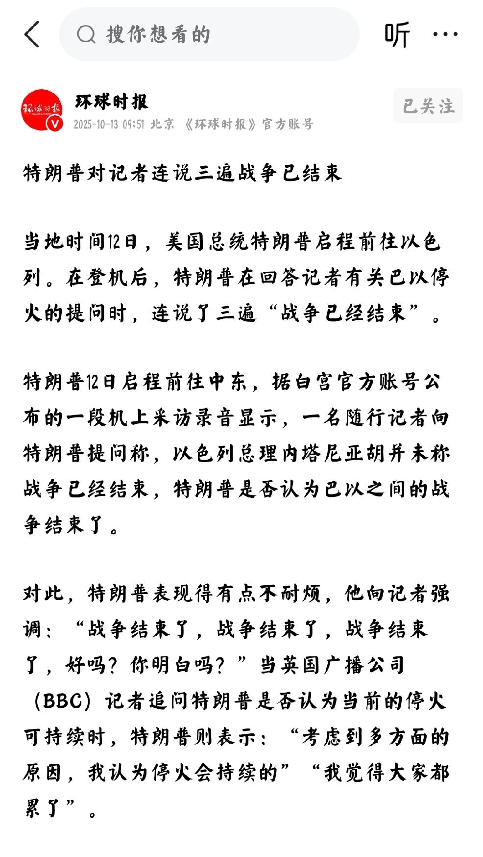 美以双方:谁在说假话? 个人认为:这不难判断,无论是从国际形势判断,还是从利益角度判断,还是从经济危机判断,都在说明以色列总理-内塔尼亚胡所说的是真话,是反映美以双方政府的深层态度。 个人预判:下一步美以双方政府进攻的对象是中东-伊朗。 美以两国是越疯狂-越虚弱-越战争-直至崩溃瓦解,这是极端恶性循环。 国际形势有待发展,继续观察。