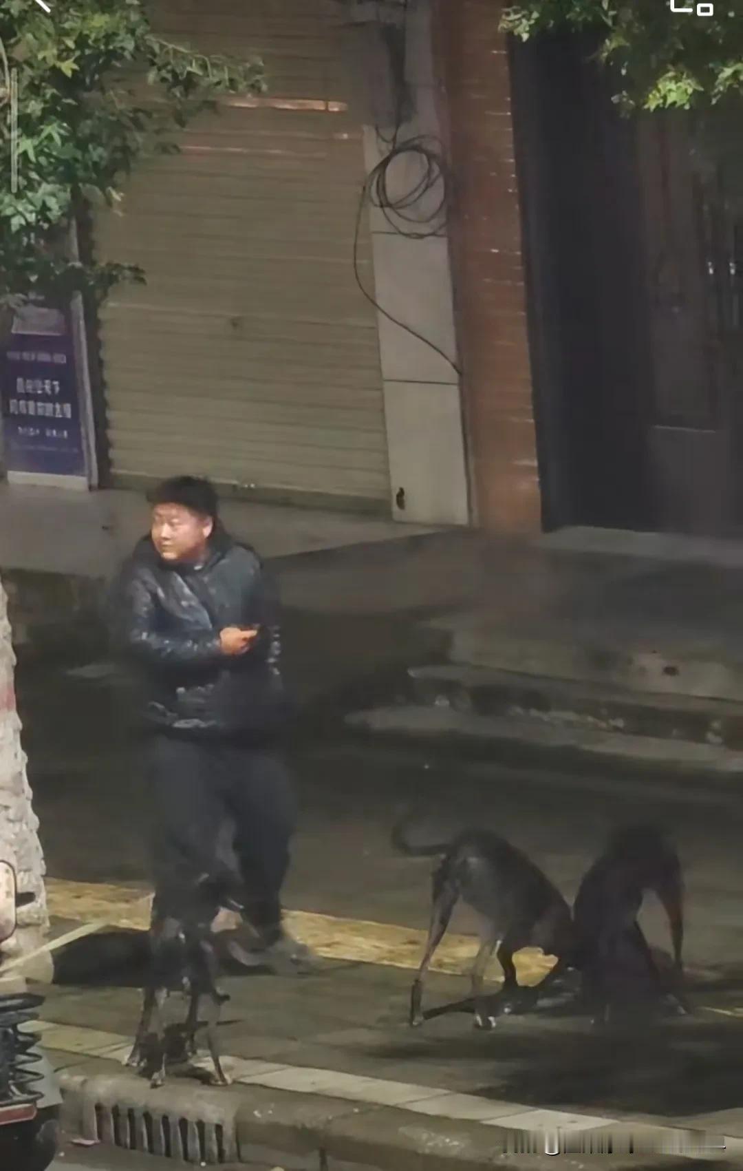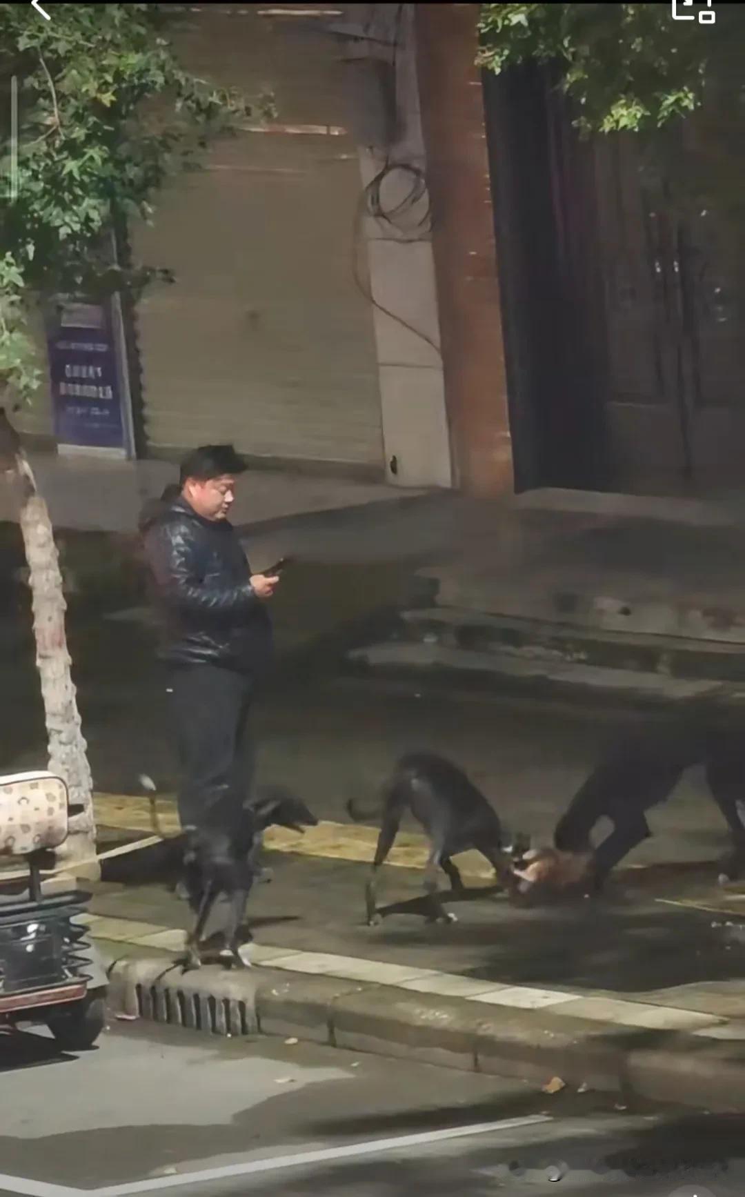 太坏了!河南漯河,一中年男子放任其饲养的三只烈性犬撕咬一只流浪狗,全程未阻拦,反而淡定地持手机录像。网友:这狗主人比他的狗还狠,心中绝对有恶。 事情是发生在10月12日晚上,视频中的男子应该是骑着电动三轮车遛狗呢。在路上遇到只流浪狗,他养的烈犬就扑上去撕咬,只有一只烈犬套了根牵引绳,另外两只啥都没佩戴。 而这男子更让人可恨的是,全程他都没有劝阻,还一边拿出手机录像,一边扭头看了眼四周,中途嘴中还发出逗狗的声音似在教唆鼓励烈犬的行为。 真不敢想象,这恶犬今天遇到只流浪狗能扑上去撕咬,那明天碰到个小孩呢!不说小孩了,体型瘦弱一点的成人也招架不住这三头恶狗啊!而且看这狗男人的恶行,如果在个没人没监控的郊区,还不知道他能干出怎样的恶事呢? 强烈呼吁当地交警等部门介入调查,他养的烈性犬在允许范围内吗?他有资格养这种犬吗?虽是流浪狗,但他的行为太恶毒了,支持严惩,以示警诫!大家赞同吗?无绳恶狗伤人