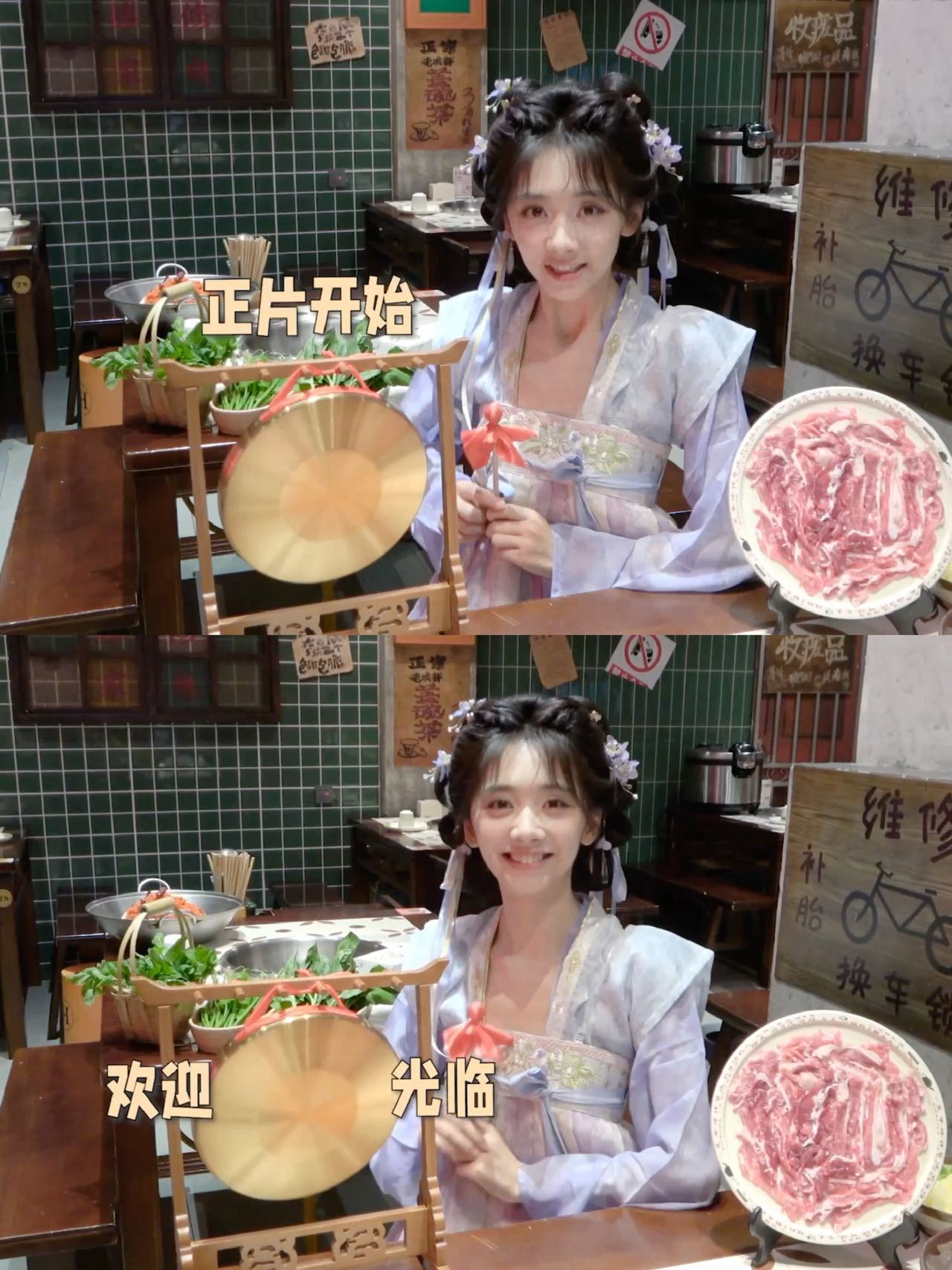 误入王影璐新菜发布会现场谁懂啊!王影璐把写真拍成“新菜发布会”,敲锣喊“欢迎光