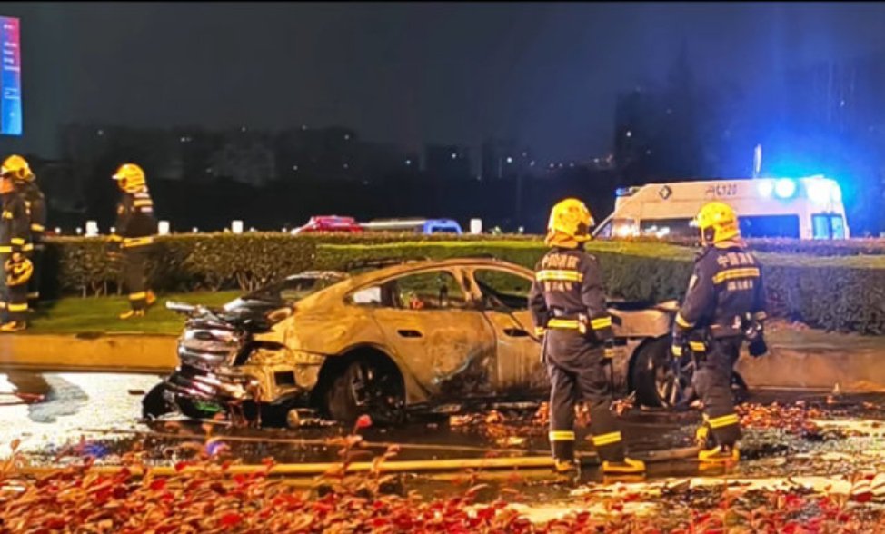 那个人严重超速,导致和其他车发生了摩擦,他的车因为惯性一下子冲进了另外的车道,然后就瞬间电池起火了,整个车都燃起来了,路人去救他,因为断电,打不开门,怎么都打不开,那个火也是灭了半个小时也灭不掉,活活烧死了。