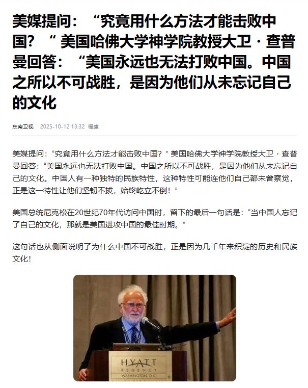 美媒提问:“究竟用什么方法才能击败中国?”美国哈佛大学神学院教授大卫・查普曼回答:“美国永远也无法打败中国。中国之所以不可战胜,是因为他们从未忘记自己的文化。中国人有一种独特的民族特性,这种特性可能连他们自己都未曾察觉,正是这一特性让他们坚韧不拔,始终屹立不倒!” 美国总想着用武力、制裁那套来压人,可他们不懂,中国从来不是靠“硬拼”立世的,是靠文化里的韧性和抱团劲儿。这种刻在骨子里的特质,从历史到当下一直没断过。 一百五十年前左宗棠抬棺出塞收复新疆,大军在荒漠里缺补给,三千天津杨柳青货郎挑着竹篓就跟上去了,里头不过是年画、膏药、针头线脑这些不起眼的物件。 可别小看这些货郎,他们手里拿着朝廷给的“龙纹执照”,跟着军队翻雪山过戈壁,不仅卖货给士兵,还成了编外后勤队——骆驼队最多时一次出动2000多头,把新疆的土特产运到内地,再把京津的百货拉回来,硬生生在乌鲁木齐的荒地上建起了“小杨柳青”商贸街。 后来朝廷没钱给新疆拨军饷,还是这些货郎出身的商帮拿出巨额银两救急,《新疆图志》里都记着他们“官中协饷不继时,犹时资以挹注”的义举。 那些竹篓里的针头线脑,看着不起眼,却是维持大军士气的“精神粮草”,这就是散落在民间的力量,平时是生意人,国家需要时就成了守土的后盾。 这种抱团韧劲儿到了现代更显眼。上世纪六十年代,河南林县人凭着一双手在太行山绝壁上凿出了红旗渠,整整九年时间,3740多万个工日砸在这条渠上,算下来相当于全县每人要出近百个工。 当时国家投资只占14.94%,剩下的全靠县社队自筹,民工们自己烧石灰14.5万吨,自己造水泥5170吨,连工具坏了都自己修,硬生生节省出1293万多元。 要知道那会儿没有大型机械,绝壁上的隧洞全靠钢钎凿、炸药炸,光是总干渠就挖了429万立方米石方,相当于把一座小山挪了位置。林县人不是天生会开山,可为了活下去、为了子孙后代,几千个普通农民拧成一股绳,这股不服输的韧劲儿,就是文化里“人定胜天”的活注解。 2008年汶川地震更能看出这种“散是满天星”的特质。映秀镇废墟里,20岁的资阳小伙尹春龙只是个普通志愿者,却在弥漫着腐尸气味的废墟里徒手挖了七天,硬生生打出一条7米长的通道,给被埋179小时的马元江递去葡萄糖水,最终帮消防员救出了这位最后的生还者。 后来他还背着失事飞机机长的遗体,在峭壁上肩扛手推护送烈士归队。而他只是当时全国130多万志愿者中的一个,还有更多没留名的人——唐山的农民开着自家拖拉机跨省去送物资,浙江的老板带着员工自驾去灾区搭帐篷,全国民众短短几个月捐了652亿元善款。 这些人平时忙着打工、做生意,可灾难一来,不用谁号召就自发站出来,这就是刻在骨子里的共情与团结。 2020年新冠疫情突袭武汉,这种团结更是被放大到极致。 武汉封城当天,全国各地的医疗队就开始往湖北赶,最终4.2万名医护人员驰援荆楚,相当于每天有近3000名医护人员“逆行”。湖北以外的省份像“对口帮扶”一样,把最好的物资往武汉送:山东的蔬菜、黑龙江的大米、广东的口罩,光是河南一个省就送去了60多万吨物资。 更有意思的是那些普通人:武汉的外卖小哥骑着电动车穿梭在空荡的街头,给医护人员送盒饭;上海的退休工人连夜赶制防护面罩;成都的菜农骑三轮车走了40公里,把自家的蔬菜捐给医院。 美国人总在算中国的口罩产能、疫苗数量,却没看到这些数据背后,是无数普通人自愿搭起的“生命防线”——他们不是军人,不是官员,只是被文化滋养出的中国人,知道“国家有难,匹夫有责”不是句空话。 这种文化韧性最厉害的地方,是它从不是靠口号维系,而是藏在柴米油盐里。就像杨柳青货郎赶大营不是为了留名,是为了谋生也为了帮衬大军;红旗渠的民工凿石头不是为了领奖,是为了让孩子有水喝;尹春龙挖废墟不是为了成名,是见不得有人被困。 美国人喜欢用“利益捆绑”解释集体行动,却不懂中国人的“家国情怀”是种文化基因——从“修身齐家治国平天下”的古训,到“一方有难八方支援”的俗成,这种观念早融进了血脉。 美国打不败中国,不是因为武器多厉害,是因为这文化养出来的中国人,聚是一团火,散是满天星。平时看着普普通通,各自为生活奔波,可只要国家需要、民族有事,那种刻在骨子里的坚韧、团结、家国情怀就会冒出来,挡都挡不住。