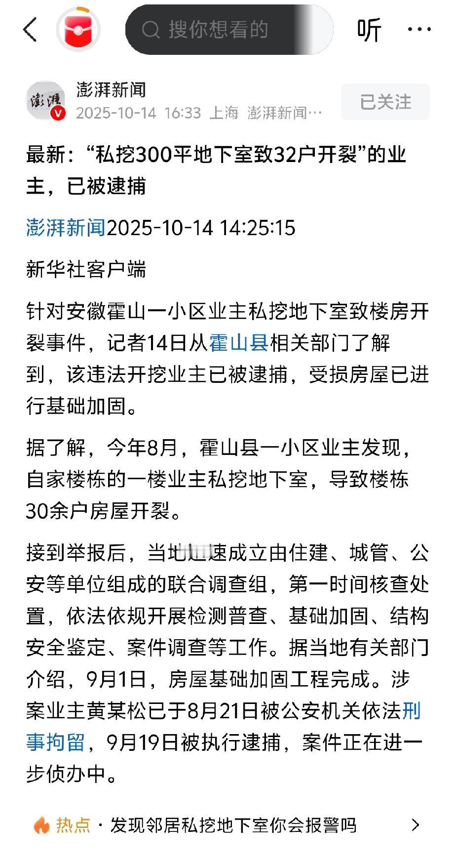私挖300平地下室的业主已经被刑事拘留。 房子是掏空32户,每户六个人钱包,两代