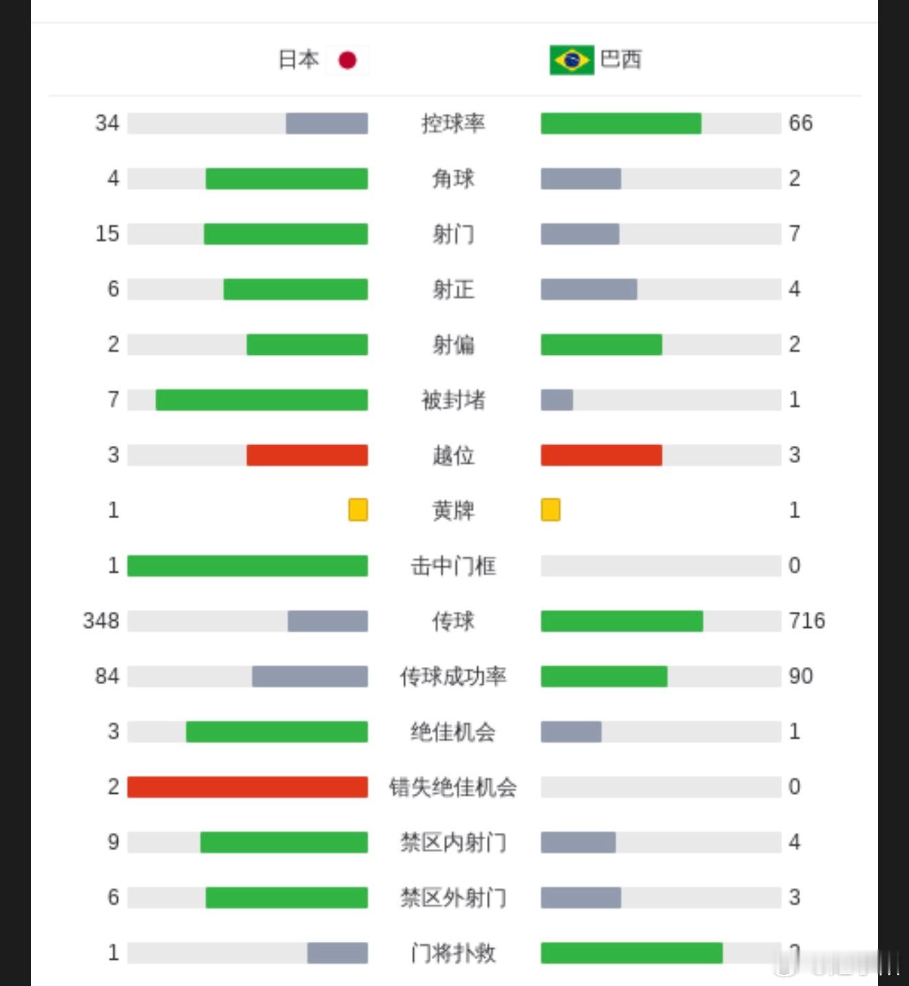 这样的赛后数据和输赢结果的反差,印象中是越来越多了。日本队史首胜巴西