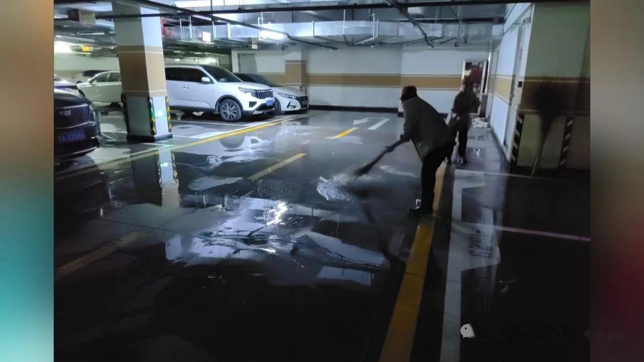 济南小区新景观车库里面看“喷泉”! 最近,济南溪悦花园一期多了一处业主打卡点