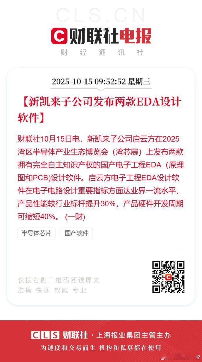 新凯来子公司启云方在2025湾区半导体产业生态博览会(湾芯展)上发布两款拥有完全自主知识产权的国产电子工程EDA(原理图和PCB)设计软件。