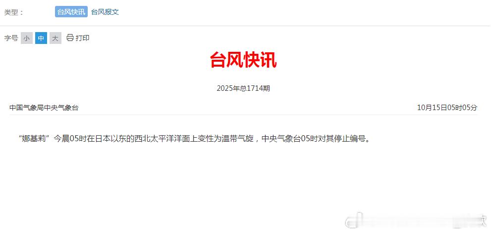 【台风娜基莉停编】今晨台风娜基莉转为温带气旋,中央气象台对其停止编号。娜基莉转变