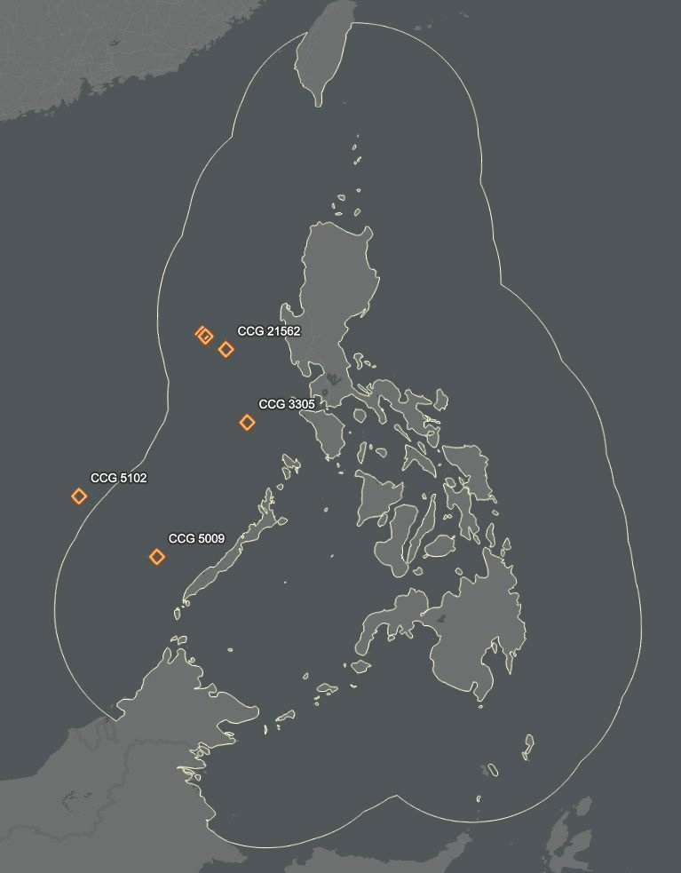 烽火问鼎计划外网图片:15日上午,中国海警船的位置图,可以看到继续堵在菲律宾家门口。