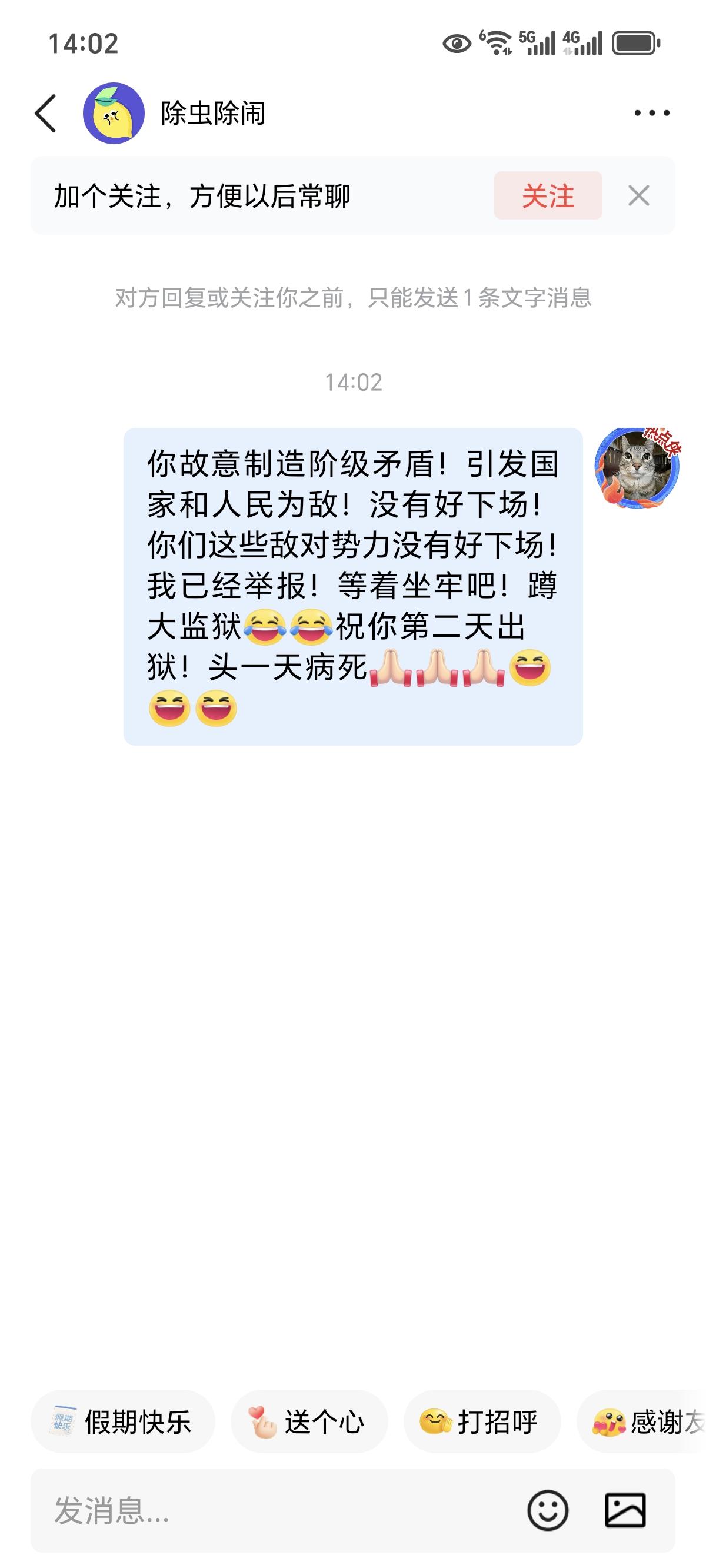 最近头条上面很多水军!故意污蔑农民!应该是受国外敌对势力操纵!故意制造矛盾,引发阶级斗争!使得国家和农民为敌!其心可诛!它们不知道,国家为农民设置了农保和合作医疗,而且每年都在增加!国家一片欣欣向荣!万众一心!不需要这些魑魅魍魉挑拨矛盾!建议严惩!分化国家!应该严查重判!直接死刑[祈祷][祈祷][祈祷][祈祷][祈祷][祈祷]