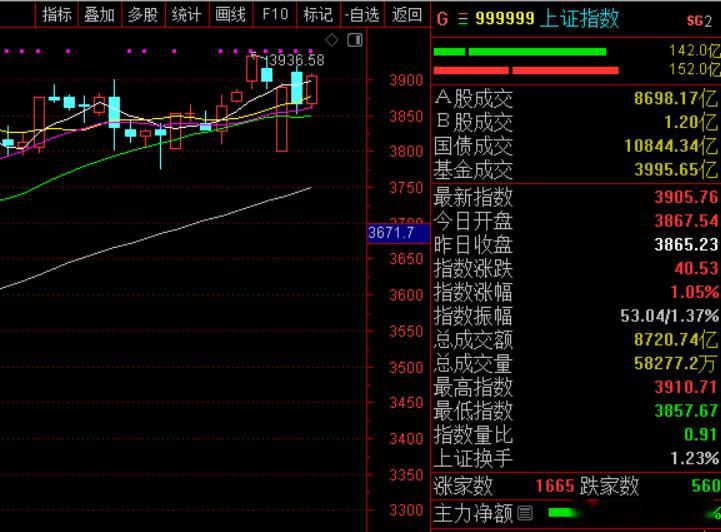 我昨天说了,今天看反弹,但是反弹的力度比我想象的要大,我给的目标就是3890点,今天上午最高点就3887点。今天下午直接奔向了3910点。