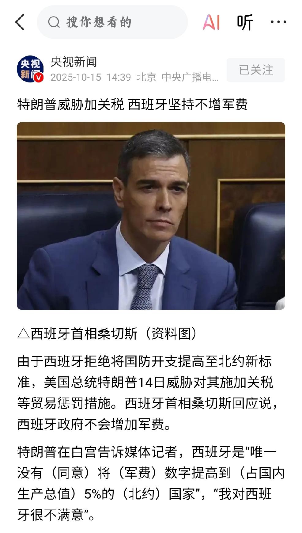 国际资讯: 货真价实的演员 个人认为,此刻的美国总统-特朗普与西班牙的关于军费矛盾,恰恰证明了特朗普是货真价实的顶级演员。特朗普用着屡见成效的套路手段,对待欧盟的西班牙,这次能见效否? 个人认为此事的意义在于欧盟也有反对美国的不和谐。 当然,西班牙的最终选择,无关紧要了。 特朗普发难 聊特朗普 特朗普征加关税 川普特朗普 特朗普外交突袭