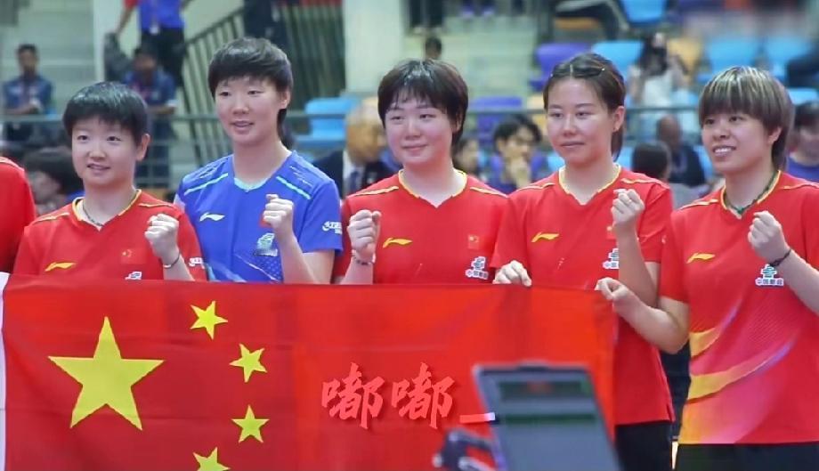 国乒女团亚锦赛夺冠名场面:五朵金花握拳头举国旗,这凝聚力绝了! 印度亚锦赛女